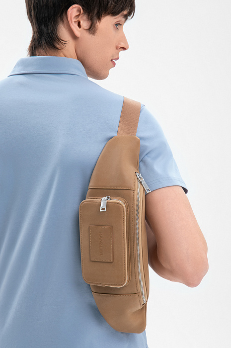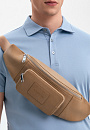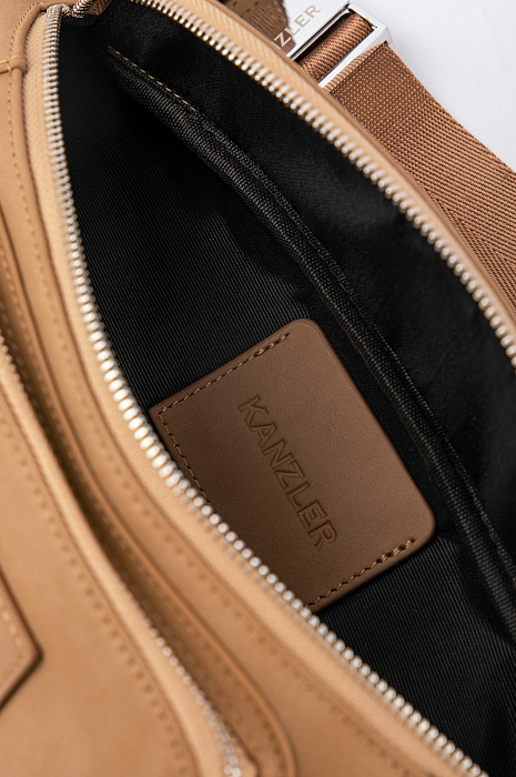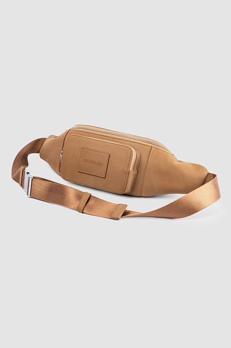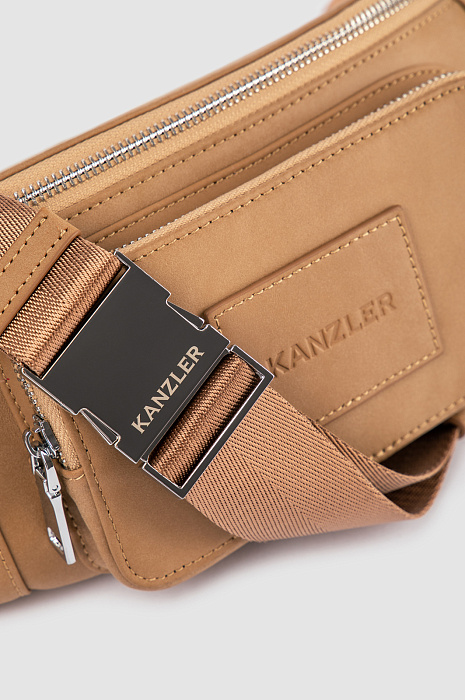 Бежевая поясная сумка KANZLER из гладкой матовой кожи с тисненым логотипом — верный помощник, если Вы живете в городе. Во-первых, в нее можно сложить телефон, наушники, карточки и другие необходимые мелочи, во-вторых, она очень удобна и может носиться, как минимум, тремя способами — кросс-боди, на поясе и на плече, сзади. Стильная модель вариативна в сочетаниях с одеждой — ее можно надевать и с костюмом и плащом, и с одеждой в уличном и спортивном стилях. Предусмотрено вместительное основное отделение и карман для мелочей. Широкий текстильный ремень можно регулировать.