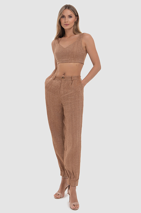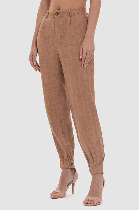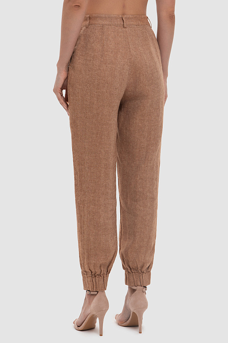 Брюки изо льна коричневого цвета
