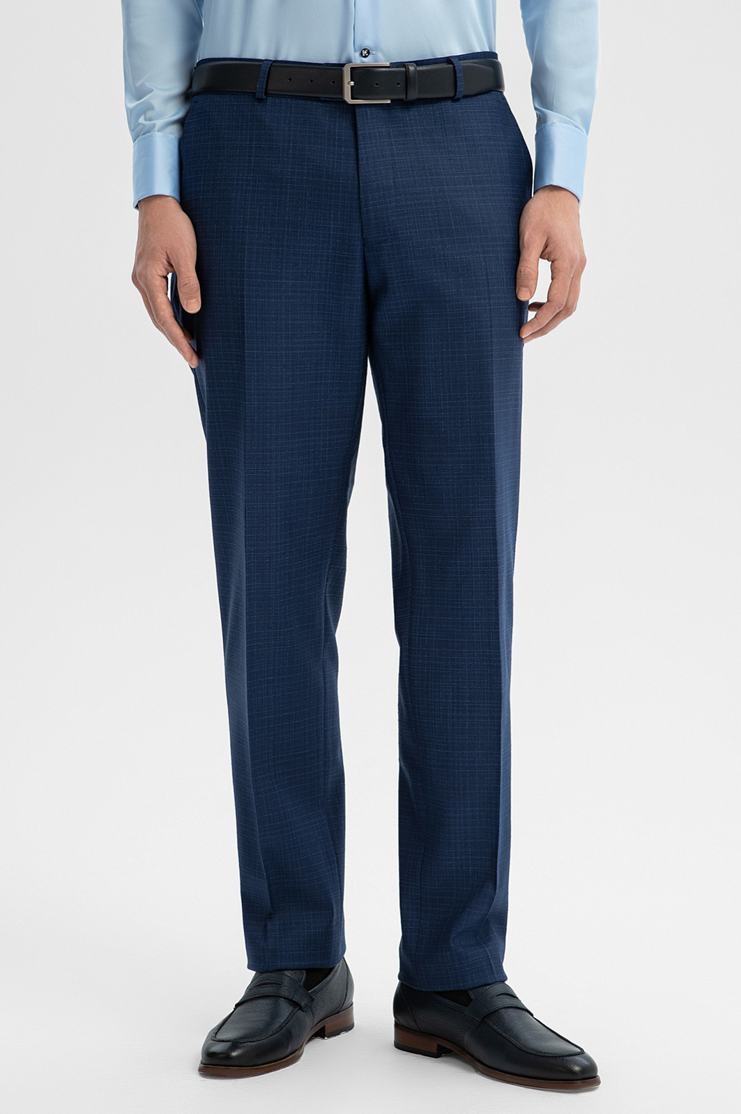 Брюки из шерсти и льна с водоотталкивающей обработкой, цвет синий, цена 14 990 руб., код 268969 - купить в Казани в интернет-магазине KANZLER
