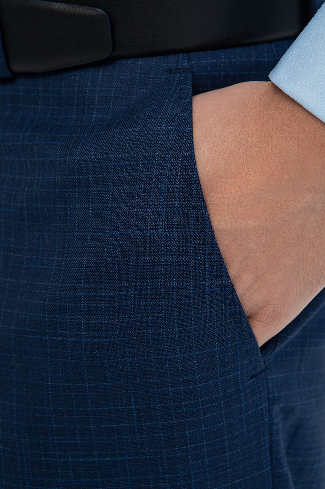 Синие классические брюки KANZLER из шерсти, хлопка и льна с водоотталкивающей обработкой — сочетание элегантности и практичности. Приталенный силуэт стройнит фигуру, традиционные стрелки придают образу выразительность и строгость. Дорогая натуральная ткань с полотняным переплетением сделана из тонкой сертифицированной овечьей шерсти Супер 120S (90%), которая практически не мнется и способна восстанавливать форму. Добавление гипоаллергенных волокон хлопка и льна улучшает воздухопроницаемость и делает ткань легче. Водоотталкивающая обработка защищает материал от намокания и сохраняет аккуратный вид в любых погодных условиях. Параметры модели: рост 191, 97-77-99 Размер на модели: 50