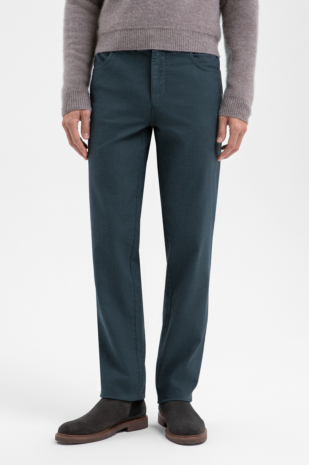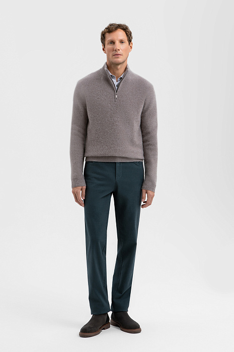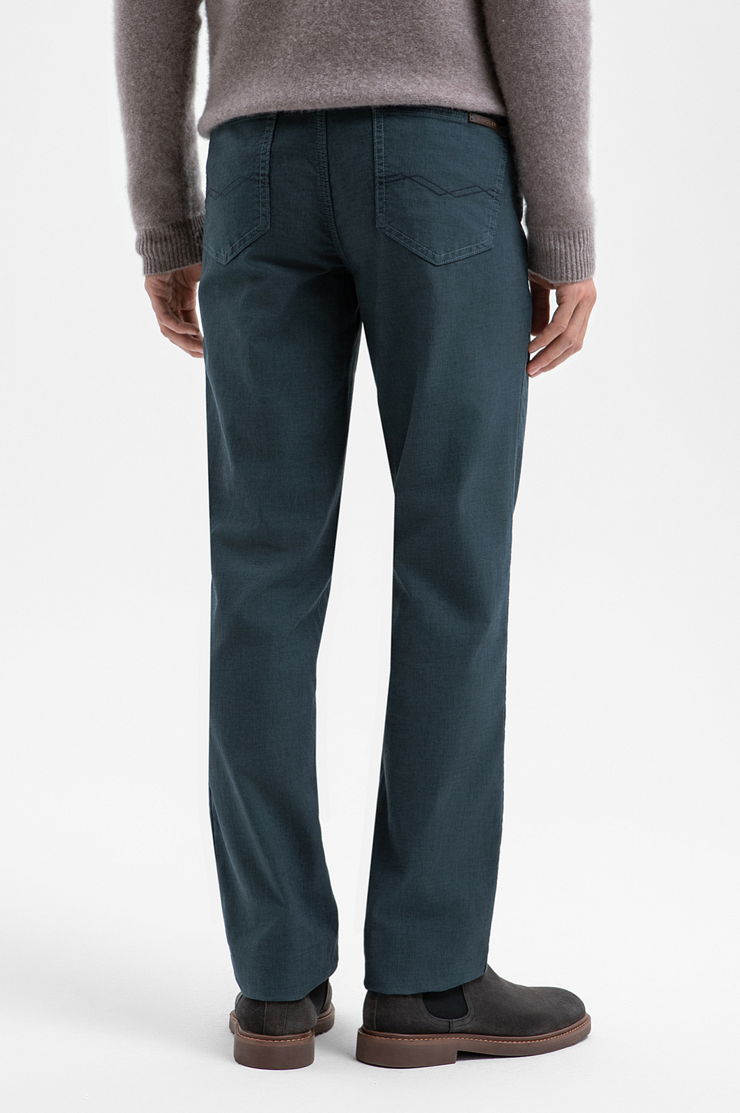Брюки KANZLER спокойного серо-зеленого оттенка созданы для тех, кто ценит сдержанную элегантность и безупречное качество в повседневном стиле. Джинсовый крой и классический силуэт обеспечивают свободу движения и естественную посадку. Отделочные швы выполнены в тон, что подчёркивает минималистичный характер модели. Плотная хлопковая ткань с добавлением эластана мягко подстраивается под индивидуальные особенности фигуры, сохраняет форму и поддерживает оптимальную для тела температуру. Подкладка из 100% хлопка обеспечивает ощущение свежести и комфорта даже при длительной носке. Параметры модели: рост 188, 97-82-92 Размер на модели: 50