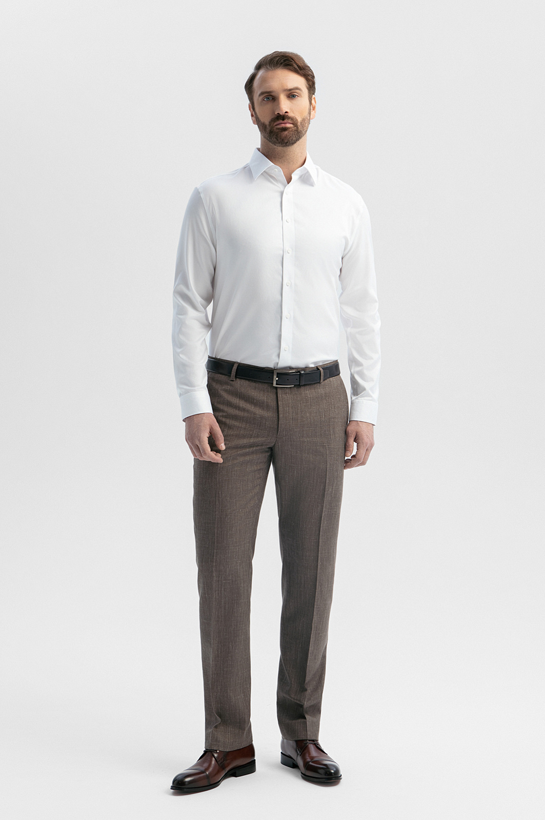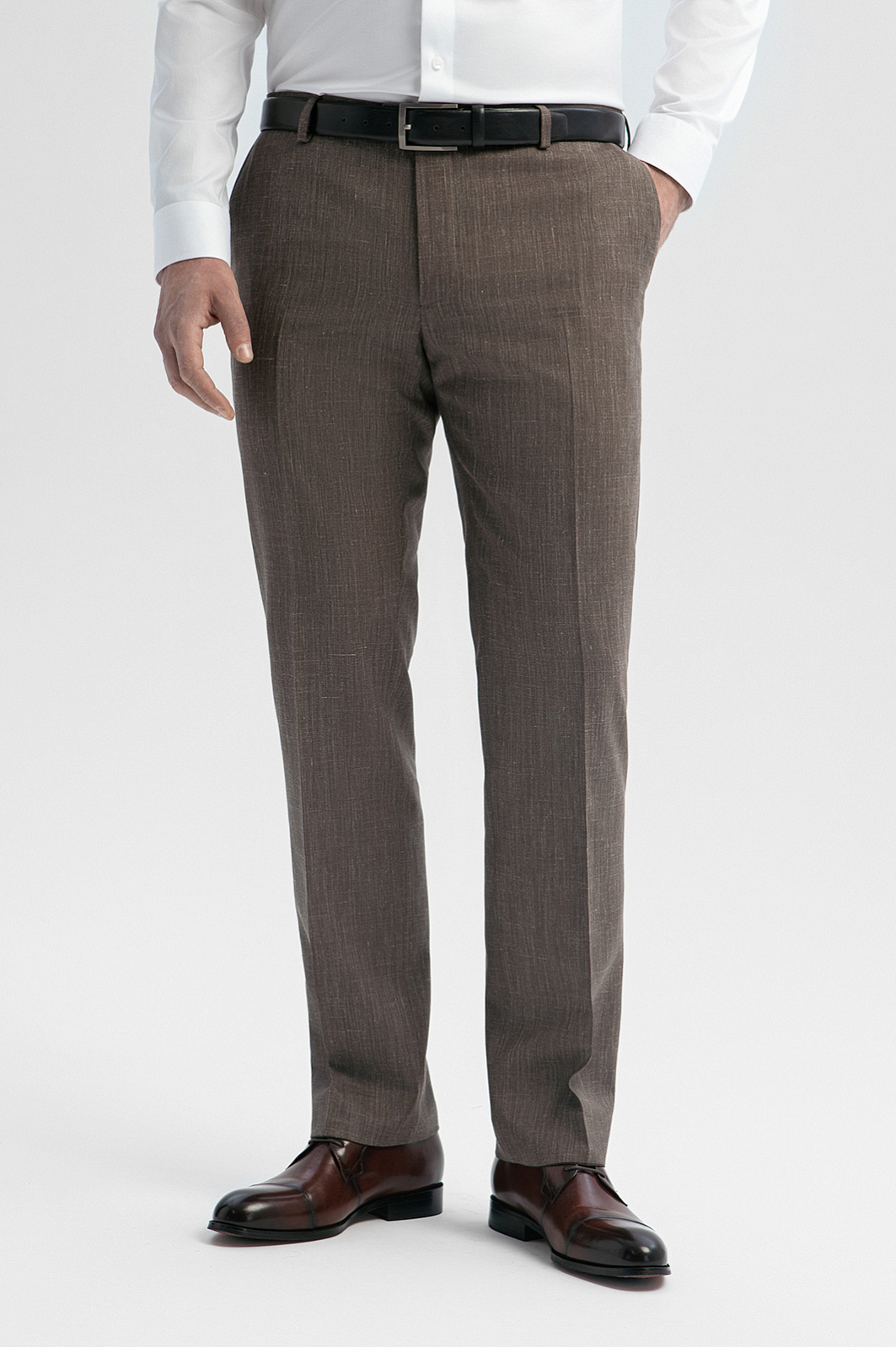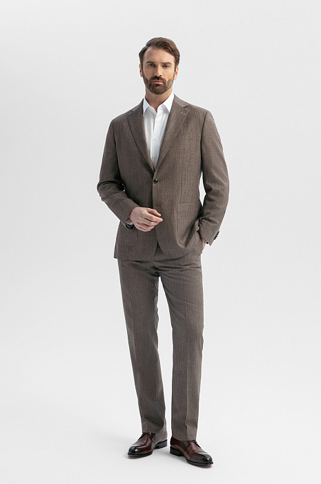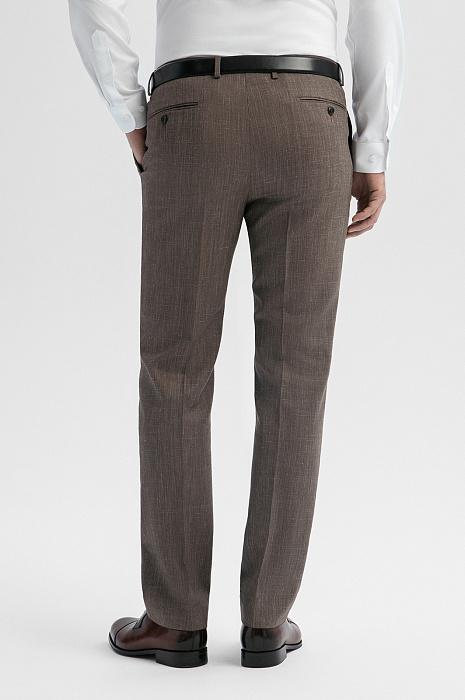 Брюки из шерсти, льна и шелка с водоотталкивающей обработкой, цвет коричневый, цена 17 990 руб., код 271023 - купить в Казани в интернет-магазине KANZLER