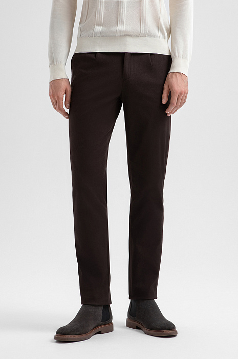 Брюки из хлопка, цвет коричневый, цена 12 990 руб., код 271306 - купить в Казани в интернет-магазине KANZLER