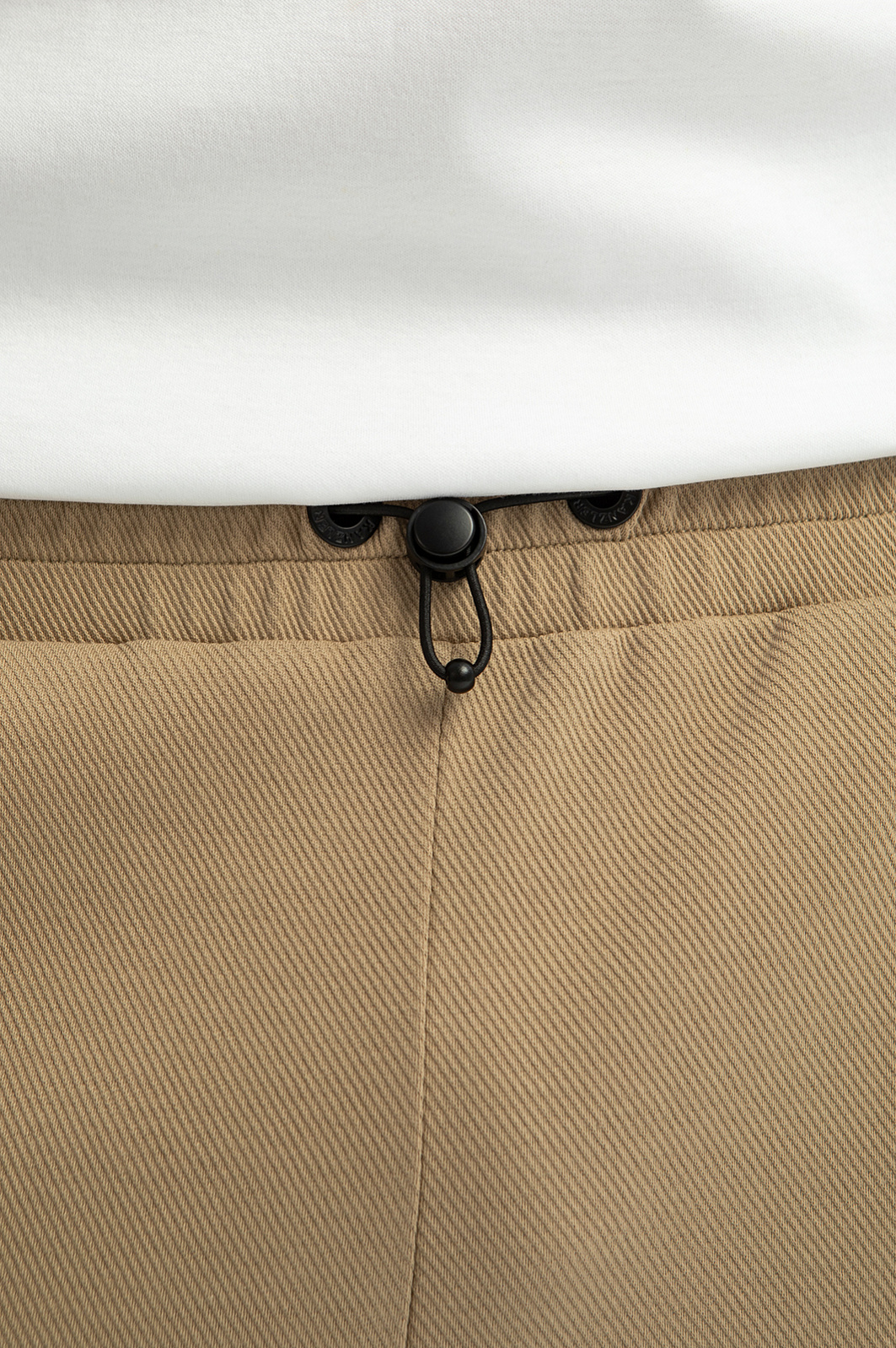 Джоггеры KANZLER из бежевой хлопковой ткани в диагональный рубчик с контрастными деталями предназначены для мужчины, который хочет оставаться стильным и в свободное время. В них удобно гулять в парке, совершать пробежки и предаваться расслабленному отдыху. Свободный крой не сковывает движений. Контрастные детали придают брюкам современный динамичный вид. Резинка с фиксатором позволяет регулировать объем талии. Модель сшита из гипоаллергенного хлопка (89%) с добавлением полиэстера. Дышащий натуральный материал сохраняет естественное тепло тела, не боится капризов погоды и выдержит испытание временем. Параметры модели: рост 192, 101-76-97 Размер на модели: M