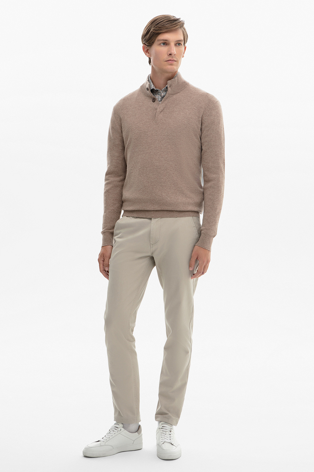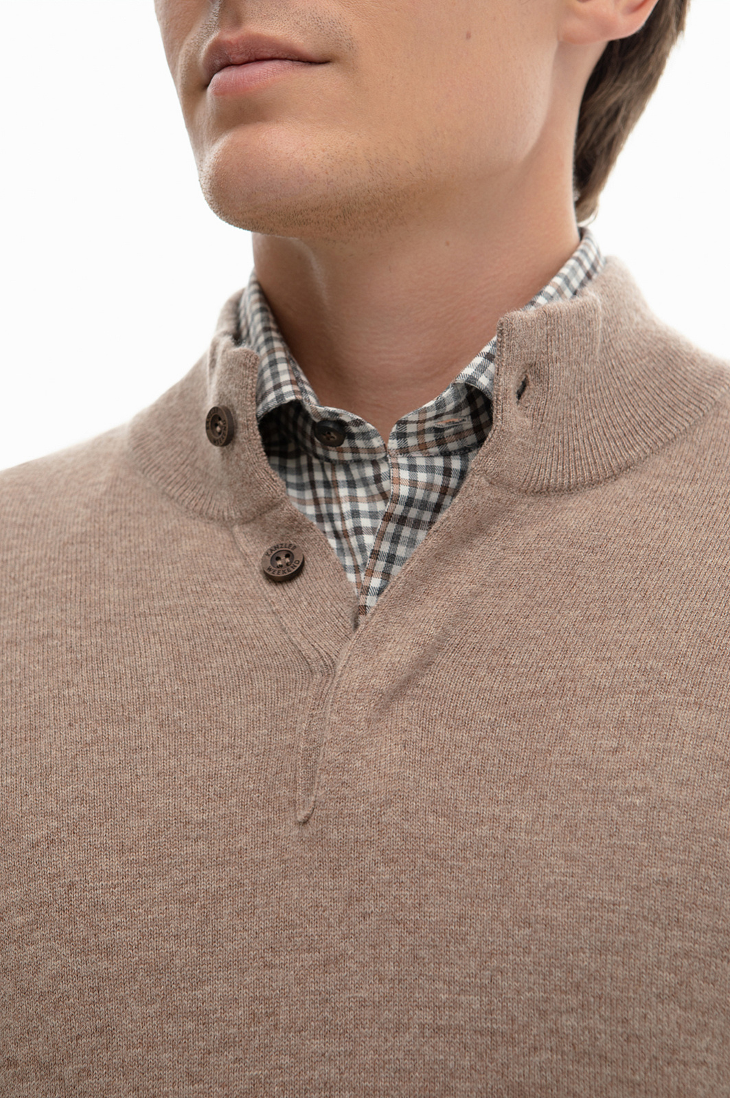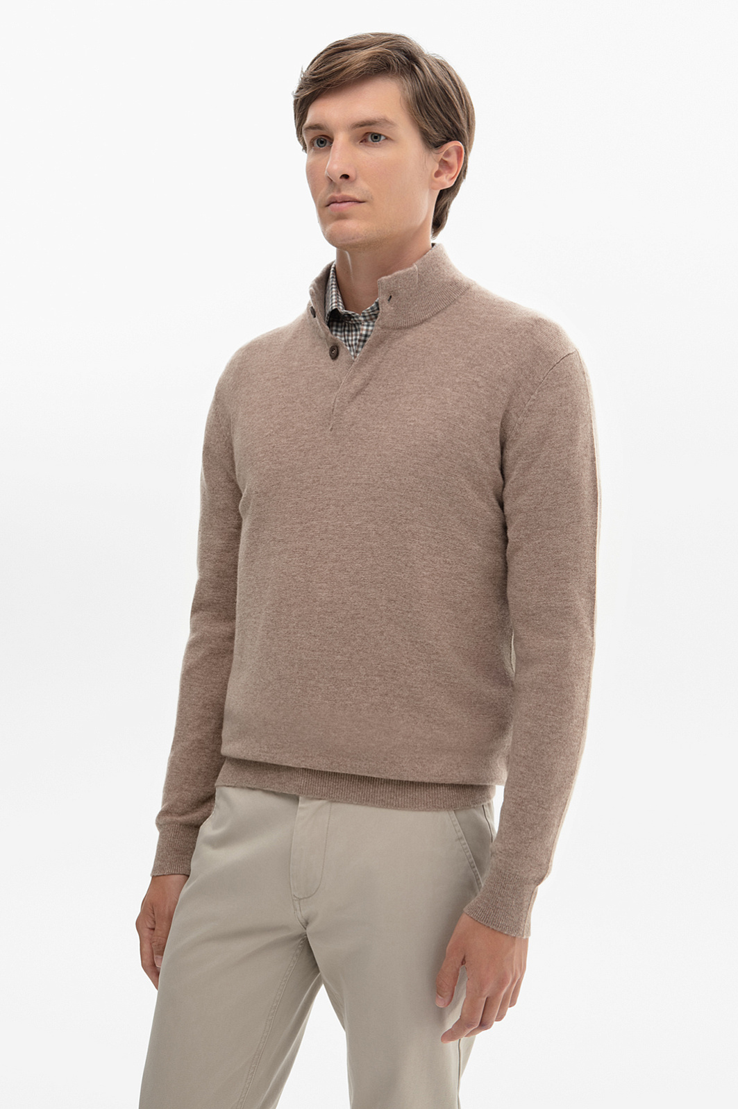 Джемпер из шерсти и кашемира — идеальное сочетание комфорта и стиля, а также основа продуманного гардероба. Особое внимание привлекает меланжевая фактура ткани, которая придаёт изделию объём и утончённость. Эта тонкая игра оттенков в бежевой гамме делает джемпер универсальным, подходящим как для повседневных, так и для более формальных образов. Дизайн изделия отличается продуманными деталями: модель застегивается на брендированные пуговицы с деревянной фактурой, дополнительно скрытые планкой. Застежка добавляет функциональности и аккуратности изделию и позволяет легко регулировать степень комфорта, оставаясь почти незаметной, сохраняя чистоту линий и минималистичный вид. Джемпер KANZLER изготовлен из высококачественной шерсти и кашемира. Этот тандем обеспечивает тепло, мягкость, долговечность и износостойкость. Кашемир придает пряже дополнительную нежность и делает модель более приятной на ощупь. Такой джемпер станет основой вашего гардероба, подчеркивая элегантность и внимание к деталям. Параметры модели: рост 191, 97-77-99 Размер на модели: M