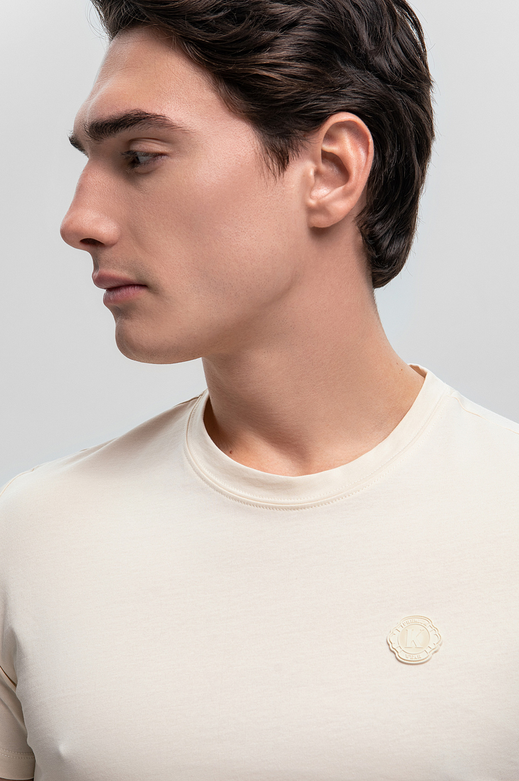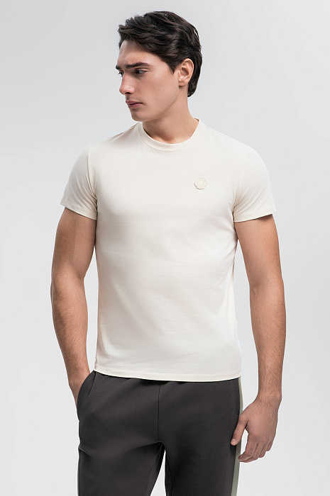 Бежевая хлопковая футболка, цвет бежевый, цена 3 990 руб., код 269135 - купить в Казани в интернет-магазине KANZLER