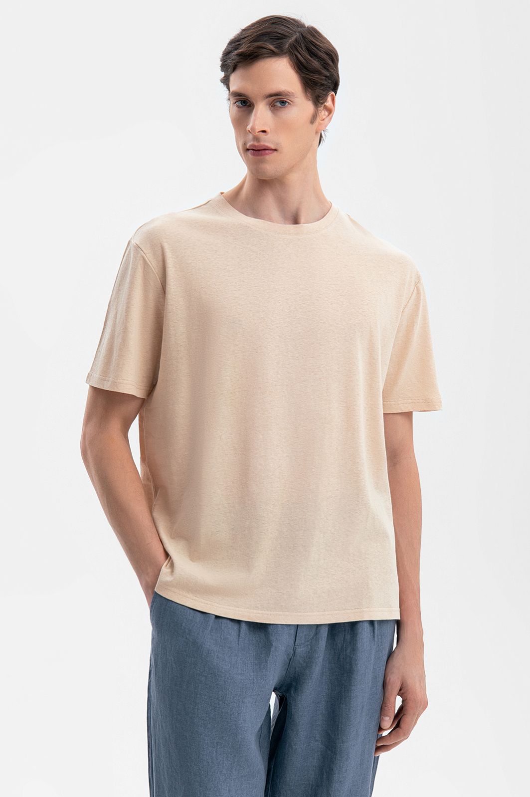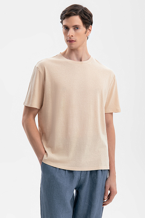 Футболка изо льна и хлопка, цвет бежевый, цена 5 990 руб., код 269379 - купить в Казани в интернет-магазине KANZLER