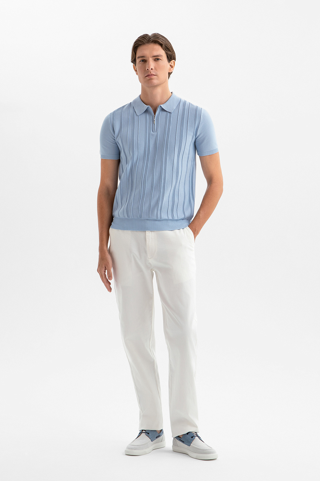 Голубое поло KANZLER из чистого хлопка — обязательная вещь для незабываемого отпуска. Модель органично сочетается с вещами для тёплых дней и служит сезон за сезоном, выдерживая испытание ярким солнцем. Голубой цвет освежает образ и создаёт лёгкое, безоблачное настроение. Рельефная вертикальная полоска спереди задаёт чёткий ритм и визуально вытягивает силуэт. Небольшая застёжка-молния служит акцентом, придавая модели современный вид. Трикотажные резинки мягко фиксируют края. Качественный трикотаж хорошо держит форму даже при активном движении. Воздухопроницаемый гипоаллергенный хлопок (100%) обеспечивает комфорт на протяжении всего дня.