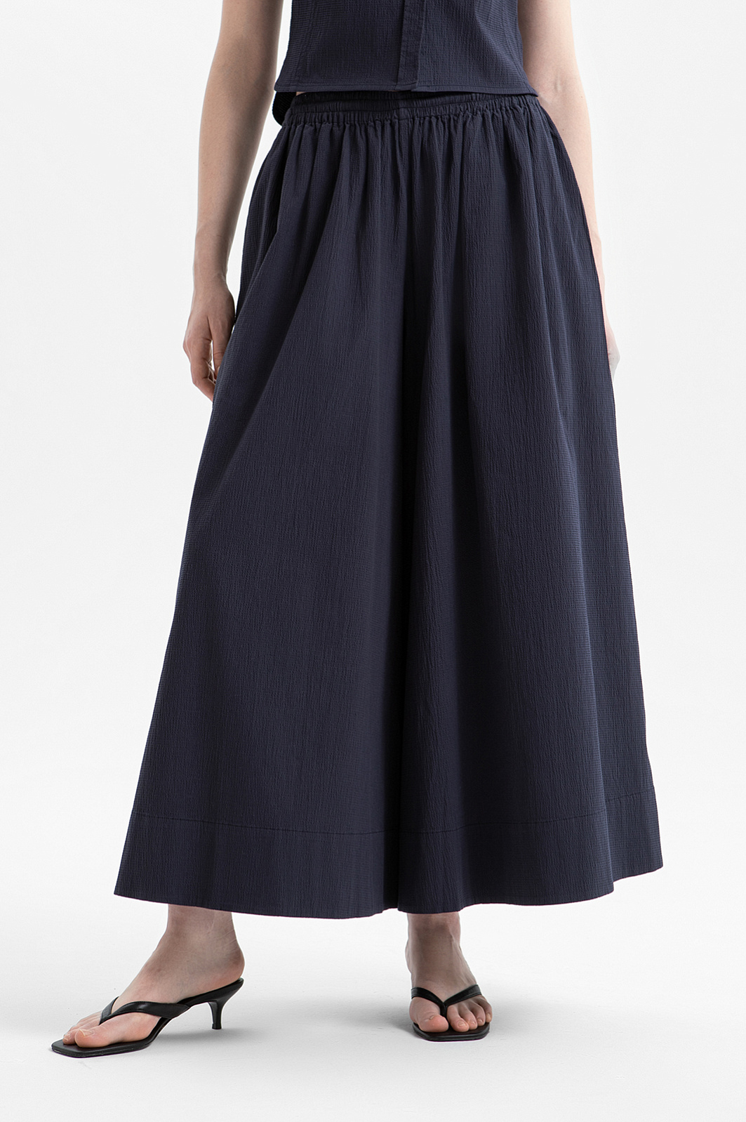 Эффектный сет KANZLER глубокого синего цвета — гармоничное сочетание лаконичной блузки и современных кюлотов, создающее стильный и комфортный образ для тёплого сезона. Блузка с небольшими рукавами-крылышками отличается Т-образным силуэтом и подчеркнутой зауженной талией. Кюлоты с широкими укороченными штанинами задают женственный силуэт и красиво раскрываются в движении, подчёркивая лёгкость и романтичность образа. Ткань с деликатной фактурой выполнена из натурального гипоаллергенного хлопка (97%) с добавлением спандекса (3%). Это приятный к телу и слегка эластичный материал, который поддерживает естественную циркуляцию воздуха и хорошо сохраняет форму.