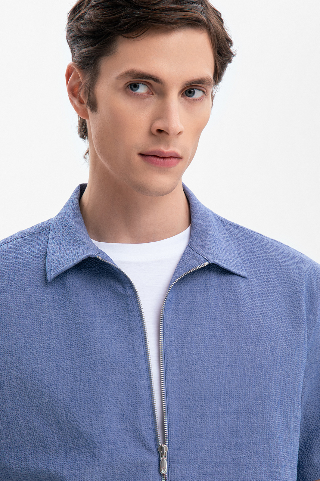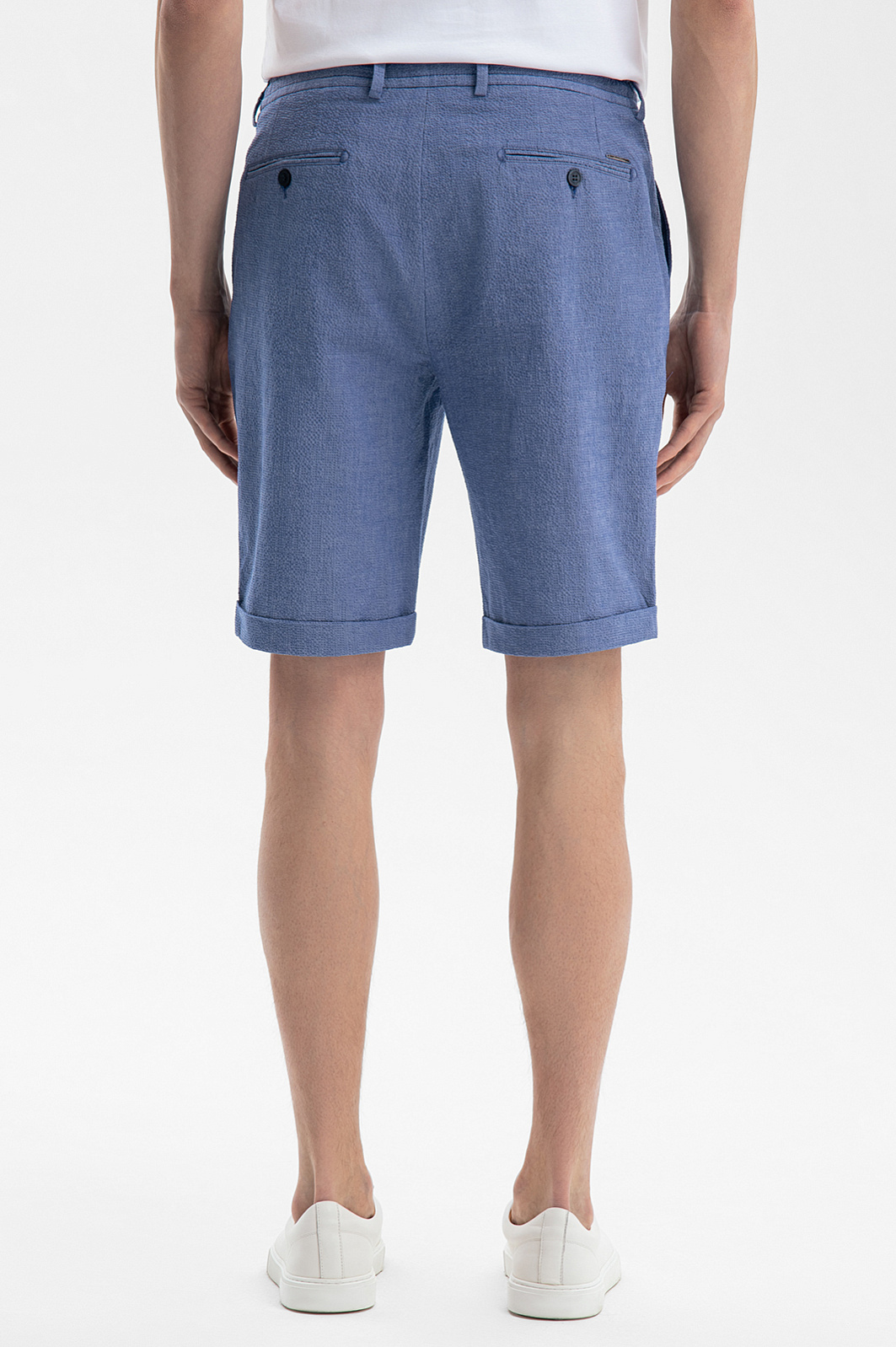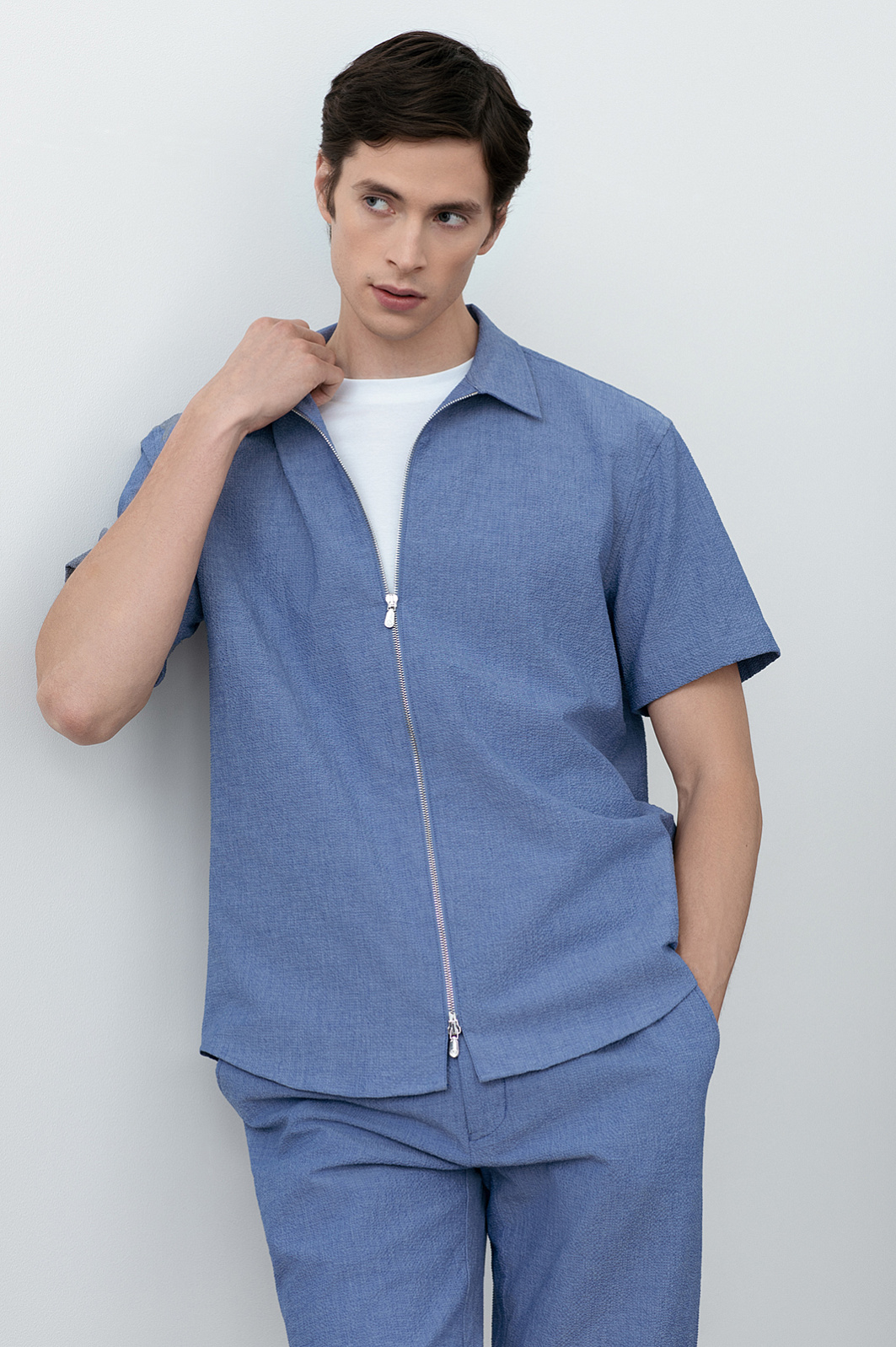 Современный летний костюм KANZLER красивого василькового оттенка из легкой фактурной хлопковой ткани из лимитированной коллекции — идеальное решение для расслабленного и непринужденного отдыха в теплые дни в городе и на курорте. Сорочка свободного кроя с коротким рукавом и двухзамковой молнией дополнена удобными бермудами на кулиске с карманами, небольшими защипами спереди и отворотами снизу. Мягкие натуральные гипоаллергенные волокна хлопка (97%) хорошо пропускают воздух и обеспечивают телу бескомпромиссный комфорт и свежесть. Небольшая добавка эластана (3%) служит для прочности и поддержания аккуратного вида костюма.