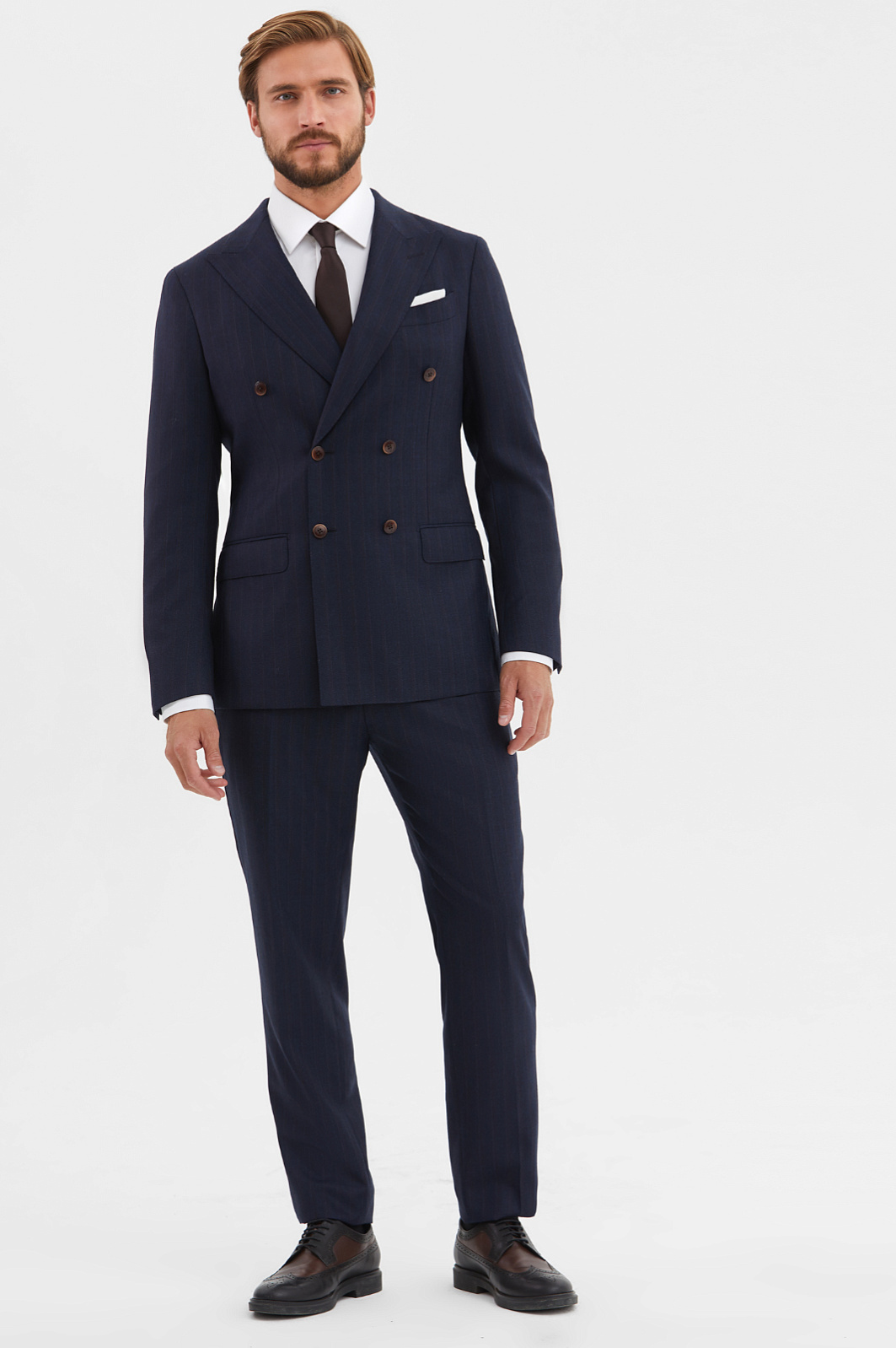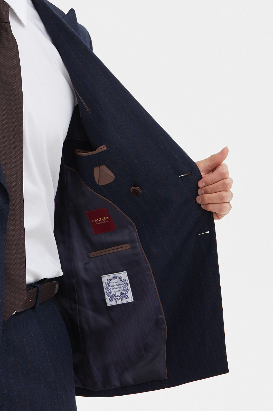 Костюм из шерсти и кашемира в полоску, лимитированная коллекция, цвет синий, цена 31 980 руб., код 210669 - купить в Казани в интернет-магазине KANZLER