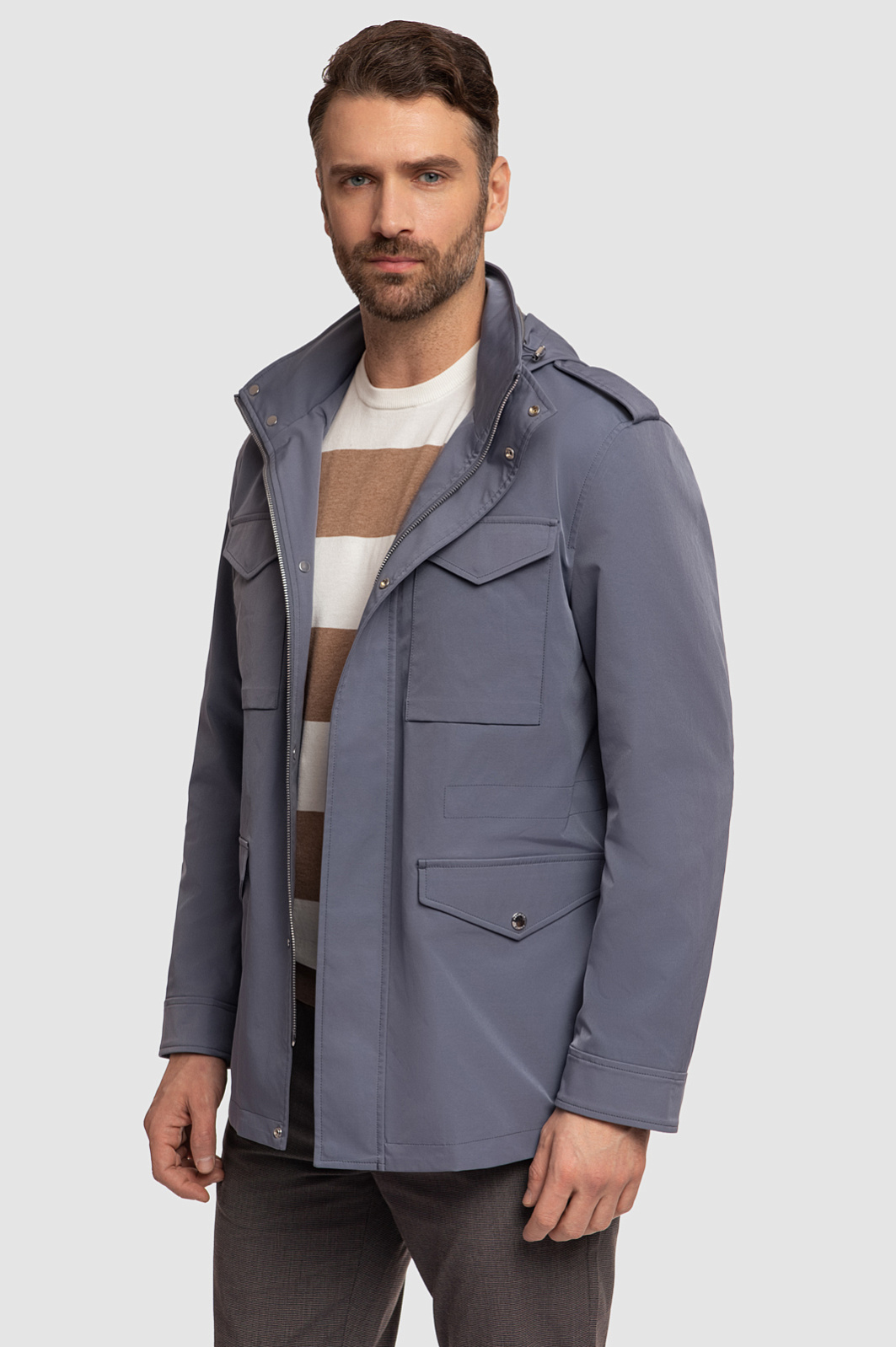 Дизайнеры KANZLER уделяют особое внимание продуманным деталям и технологичным материалам. Как, например, эта куртка с объёмными функциональными накладными карманами для важных мелочей, регулируемой кулиской по талии и высоким воротником для защиты от ветра. Главное преимущество изделия - прочный материал с водоотталкивающей обработкой. Водостойкость достигается за счет нанесения гидрофобного покрытия: капли воды скатываются с материала, не пропитывая его. Особого внимания заслуживает глубокий съемный капюшон, который можно отстегнуть в случае необходимости и спрятать в отделение на молнии. За идеальную посадку отвечает скрытый пояс-кулиска и оптимальная длина чуть ниже бедра. Изделие застёгивается на молнию, скрытую планкой. Благородный оттенок весеннего неба прекрасно сочетается с базовым денимом, белыми джинсами или брюками в синем оттенке. Параметры модели: рост 189, 102-80-99 Размер на модели: 50