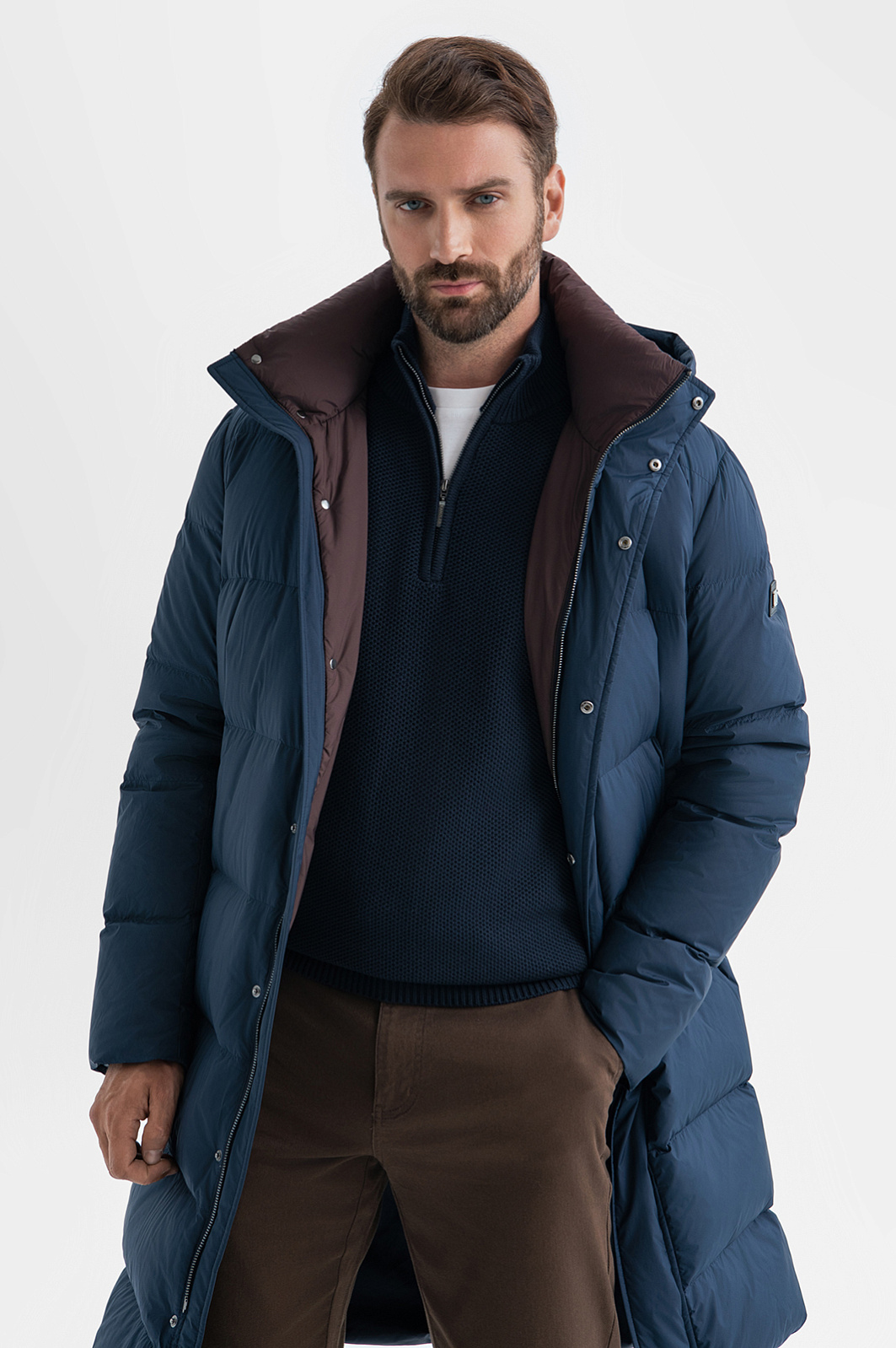 Стильный удлиненный пуховик KANZLER c водоотталкивающей обработкой — идеальный выбор для холодного времени года. Модель оснащена двумя вместительными карманами, высоким воротником и капюшоном, обеспечивающими надежную защиту от ветра и холода. Застегивается на металлическую молнию, скрытую планкой, что придает изделию лаконичный вид. Особое внимание привлекает оригинальное сочетание благородного синего оттенка с контрастной внутренней отделкой воротника и планки. Наполнитель модели — 90% пух и 10% перо. Высокий показатель пуха обеспечивает превосходную теплоизоляцию и легкость. Этот пуховик сочетает в себе стиль и функциональность, предлагая комфорт и защиту от холода. Принадлежность бренду отметили небольшим металлическим патчем с логотипом. Параметры модели: рост 189, 102-80-99 Размер на модели: 50