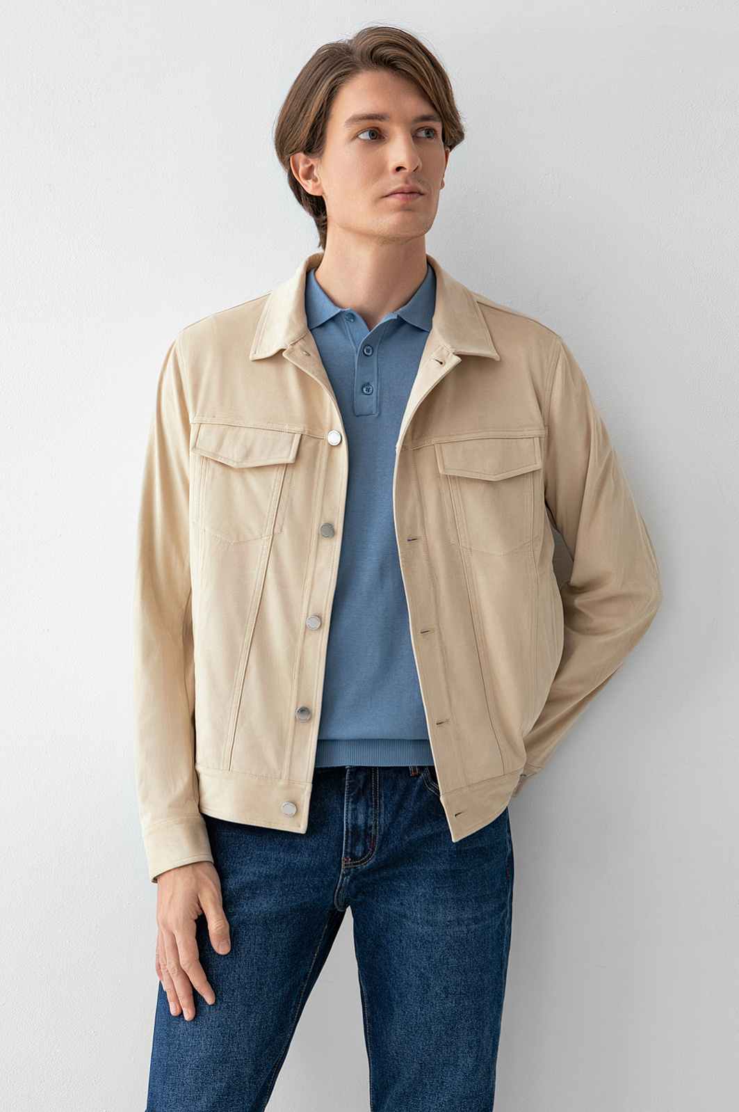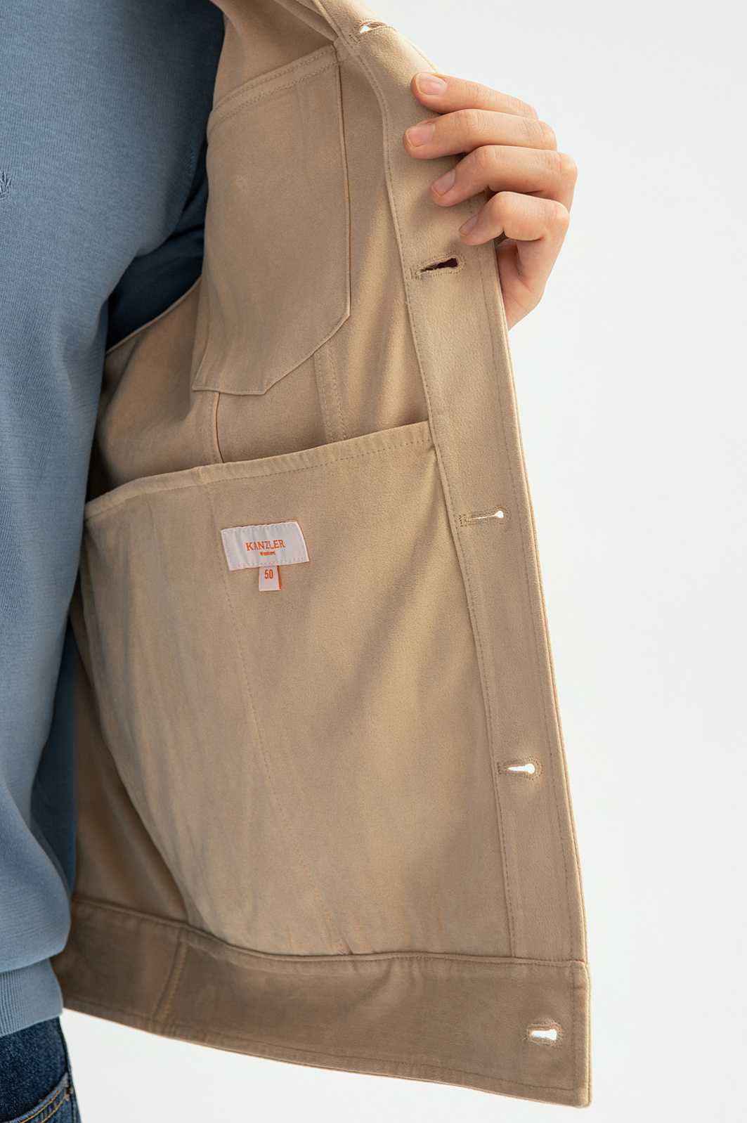 Куртка из алькантары бежевого цвета, цвет бежевый, цена 9 990 руб., код 269000 - купить в Казани в интернет-магазине KANZLER