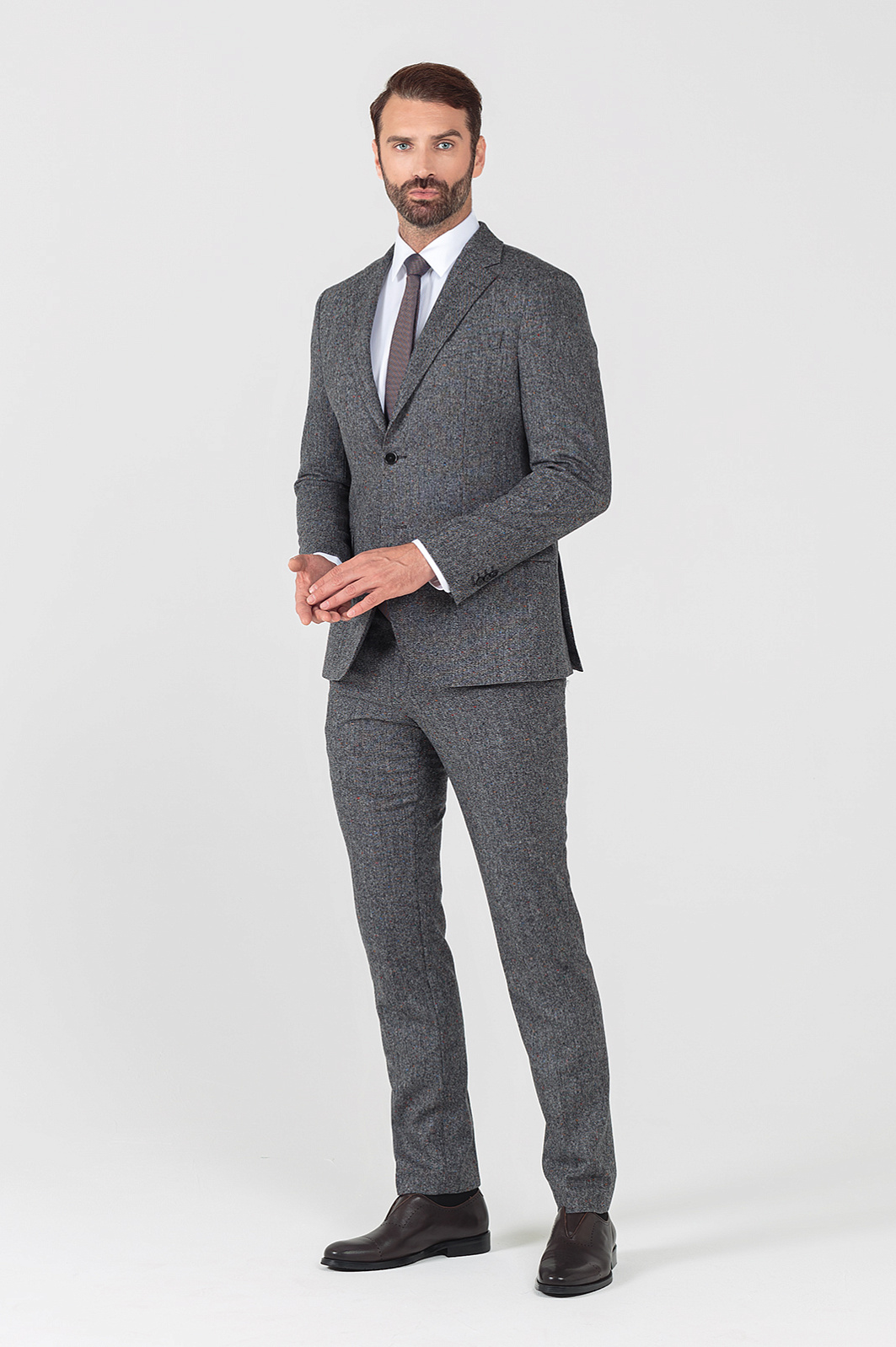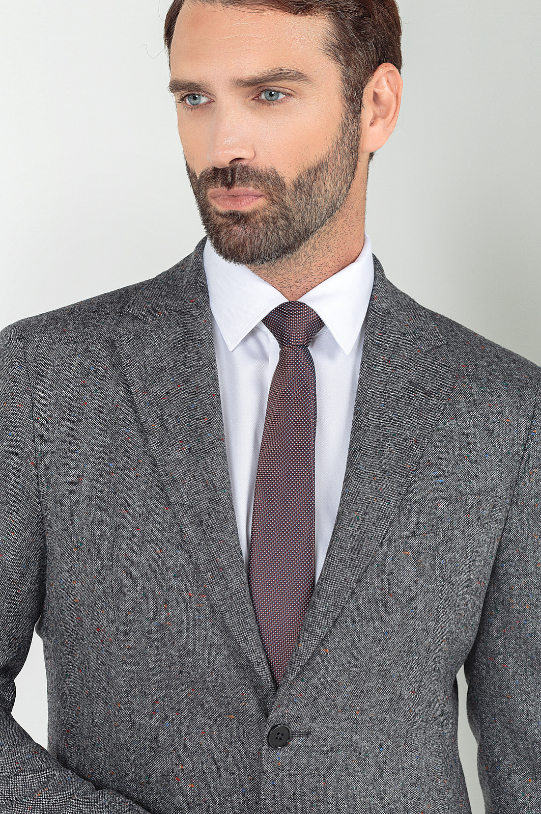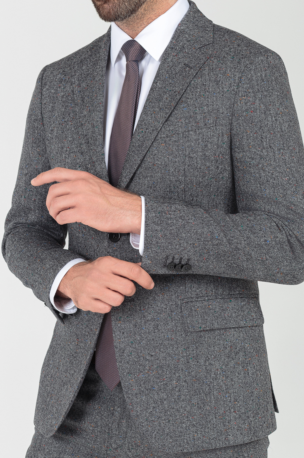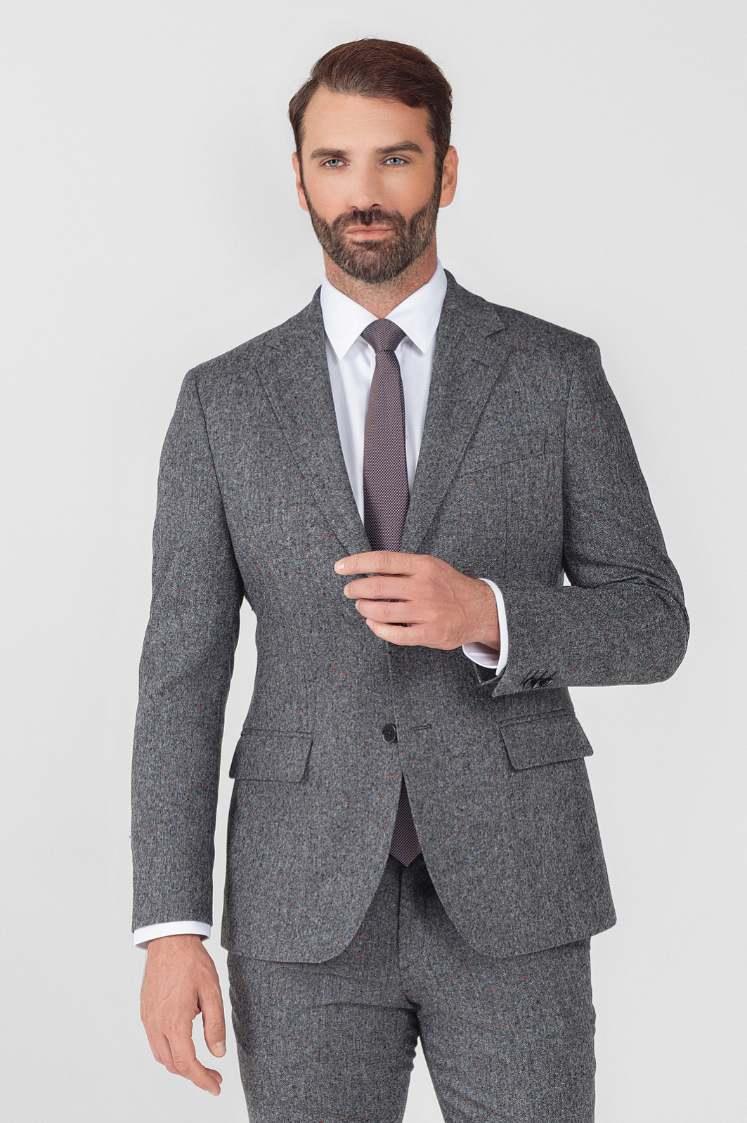 Однобортный пиджак KANZLER в благородном графитовом оттенке — стильная альтернатива классическим моделям из лимитированной коллекции. Выполнен из плотного и согревающего шерстяного трикотажа от итальянской фабрики Bottoli, которая посвятила свое дело производству роскошных натуральных тканей без красителей и химикатов и известна всему миру премиальными материалами и оригинальными расцветками. Материал отлично согревает, хорошо держит форму и не создает избыточной толщины. Обратите внимание на эффект разноцветных вкраплений, который создается благодаря особому переплетению нитей. Для подкладки мы выбрали приятную к телу охлаждающую вискозу. Пиджак застегивается на пуговицы. Комбинируйте модель с брюками из нашей коллекции. Параметры модели: рост 189, 102-80-99 Размер на модели: 50