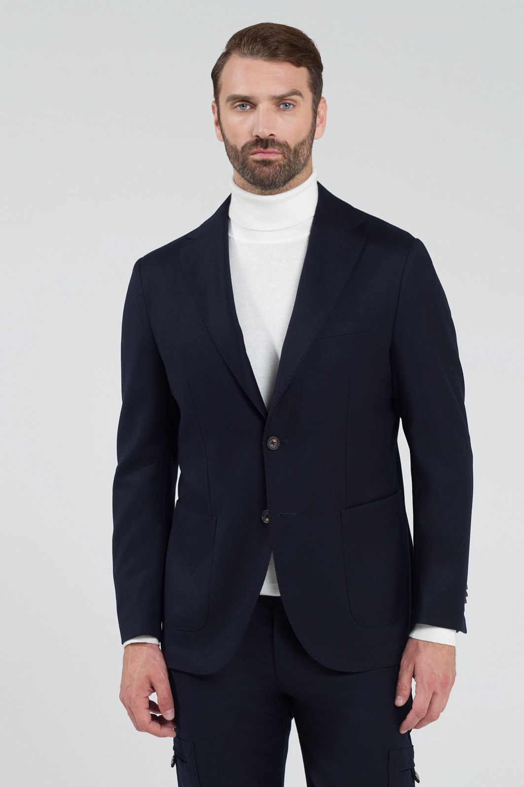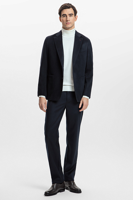 Пиджак KANZLER комфортного кроя для прохладной погоды и неформальных, но отсылающих к классике образов. Модель из лимитированной коллекции в благородном синем оттенке c прорезными карманами. Пиджак можно сочетать с рубашкой или поло, или создать более теплую комбинацию с водолазкой из шерсти и кашемира. Для изготовления модели мы выбрали мягкую, ворсистую и легкую ткань из натуральной шерсти с добавлением спандекса, который обладает отличной прочностью и износостойкостью. Застегивается на пуговицы. Комбинируйте с карго из такого же материала из нашей коллекции. Параметры модели: рост 189, 102-80-99 Размер на модели: 50