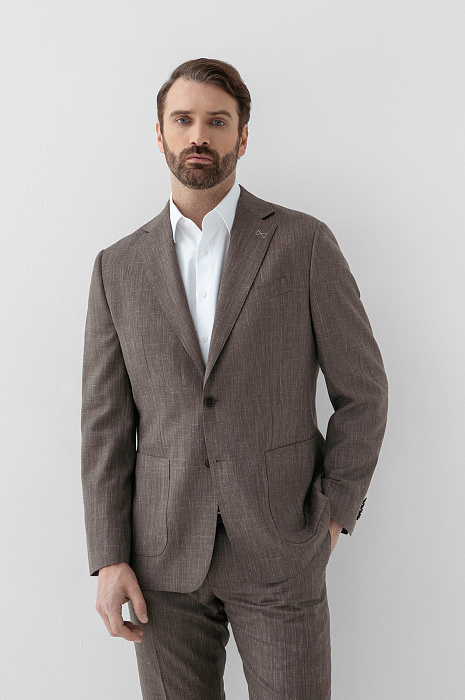 Пиджак из шерсти, льна и шелка с водоотталкивающей обработкой, цвет коричневый, цена 34 990 руб., код 271022 - купить в Казани в интернет-магазине KANZLER