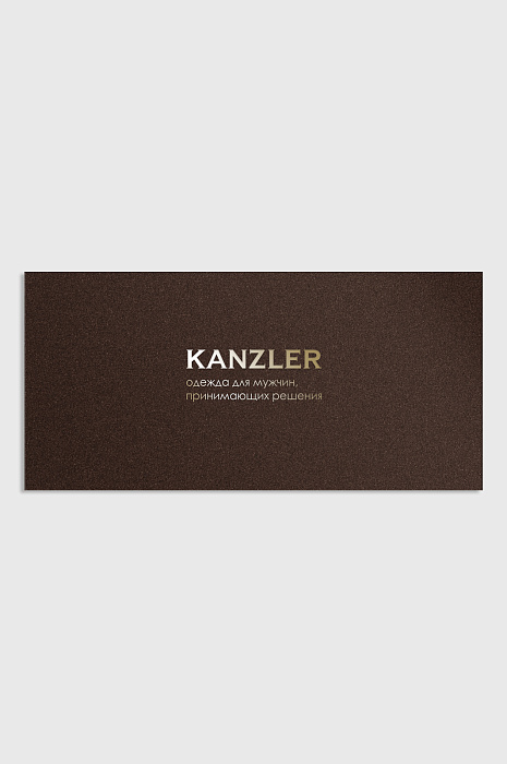 Подарочная карта KANZLER - сочетание подарка и кратчайшего пути к постижению элегантного мужского стиля. Подарочная карта позволит Вам сэкономить своё время, при этом сделать очень практичный и нужный подарок. Наша карта поможет Вам угадать с подарком на все 100% - ведь тот, кому ее дарят, будет самостоятельно совершать покупку и сделает выбор, соответствующий его пожеланиям.