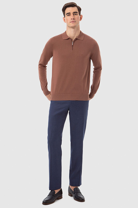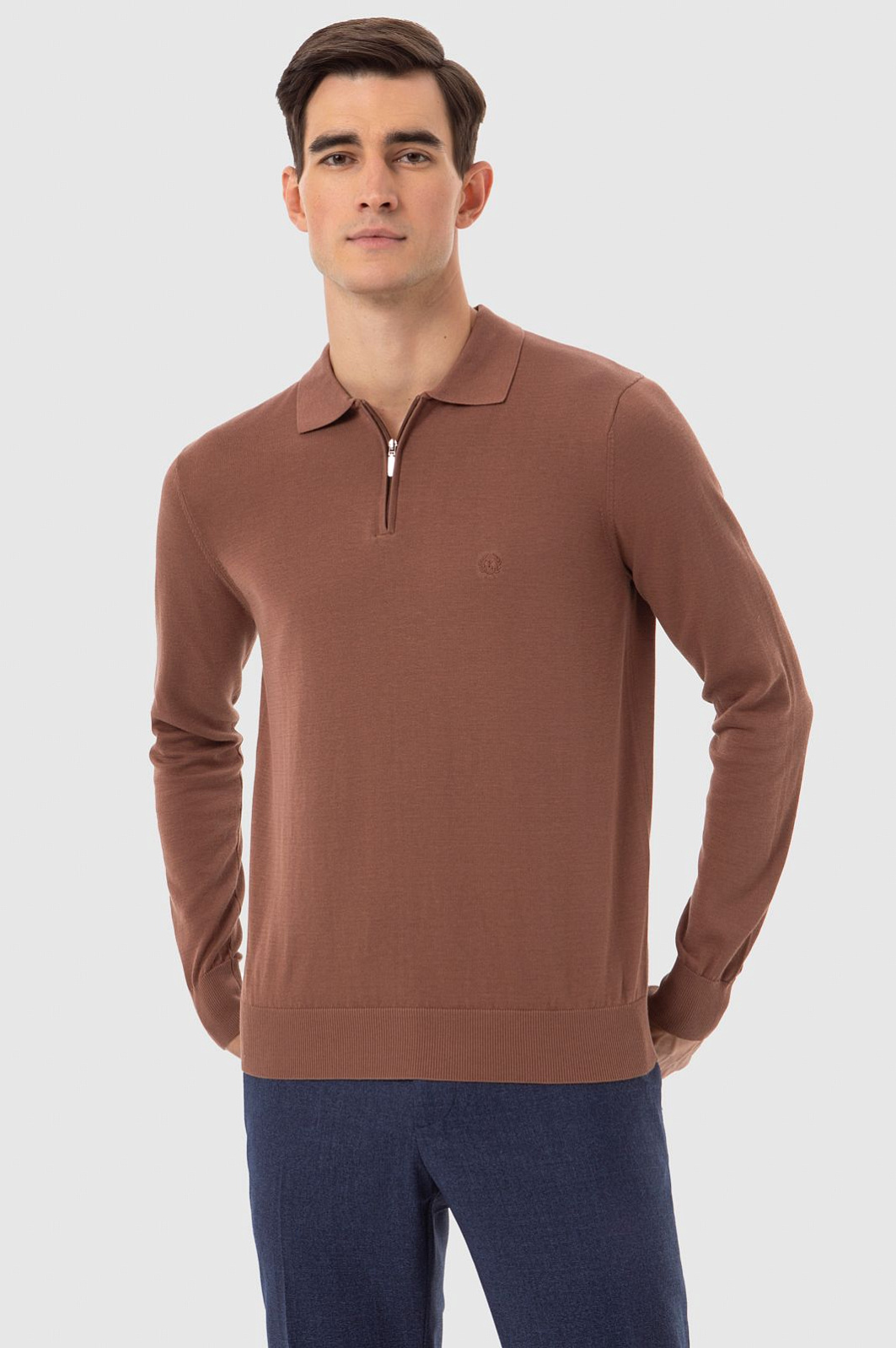 Поло KANZLER из лимитированной коллекции оттенка какао настраивает на приятный отдых в горном шале и загородном клубе. Роскошная вещь из дорогого ценного материала, созданного из хлопка, шелка и льна, адресована тем, кто ценит комфорт, индивидуальность и элегантность. Модель украшена вышитой эмблемой. Нотку спортивного шика привносит застежка-молния с аккуратным язычком из белого металла. Дорогой смесовой материал обладает уникальными достоинствами трех видов натуральных волокон. Хлопок обеспечивает воздухообмен и оптимальную для тела температуру, шелк — легкий блеск и ощущение нежного прикосновения, лен — гигроскопичность и устойчивость к загрязнению. Параметры модели: рост 192, 101-76-97 Размер на модели: M