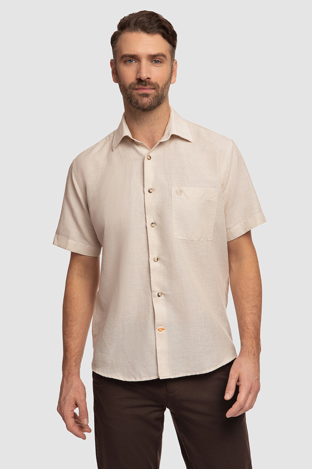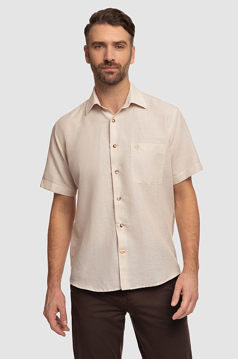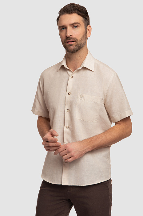 Сорочка с коротким рукавом изо льна и хлопка Getzner, цвет бежевый, цена 6 990 руб., код 267325 - купить в Казани в интернет-магазине KANZLER