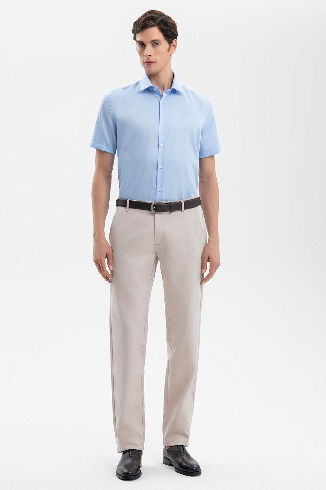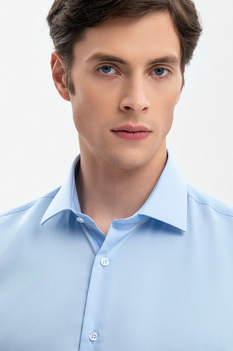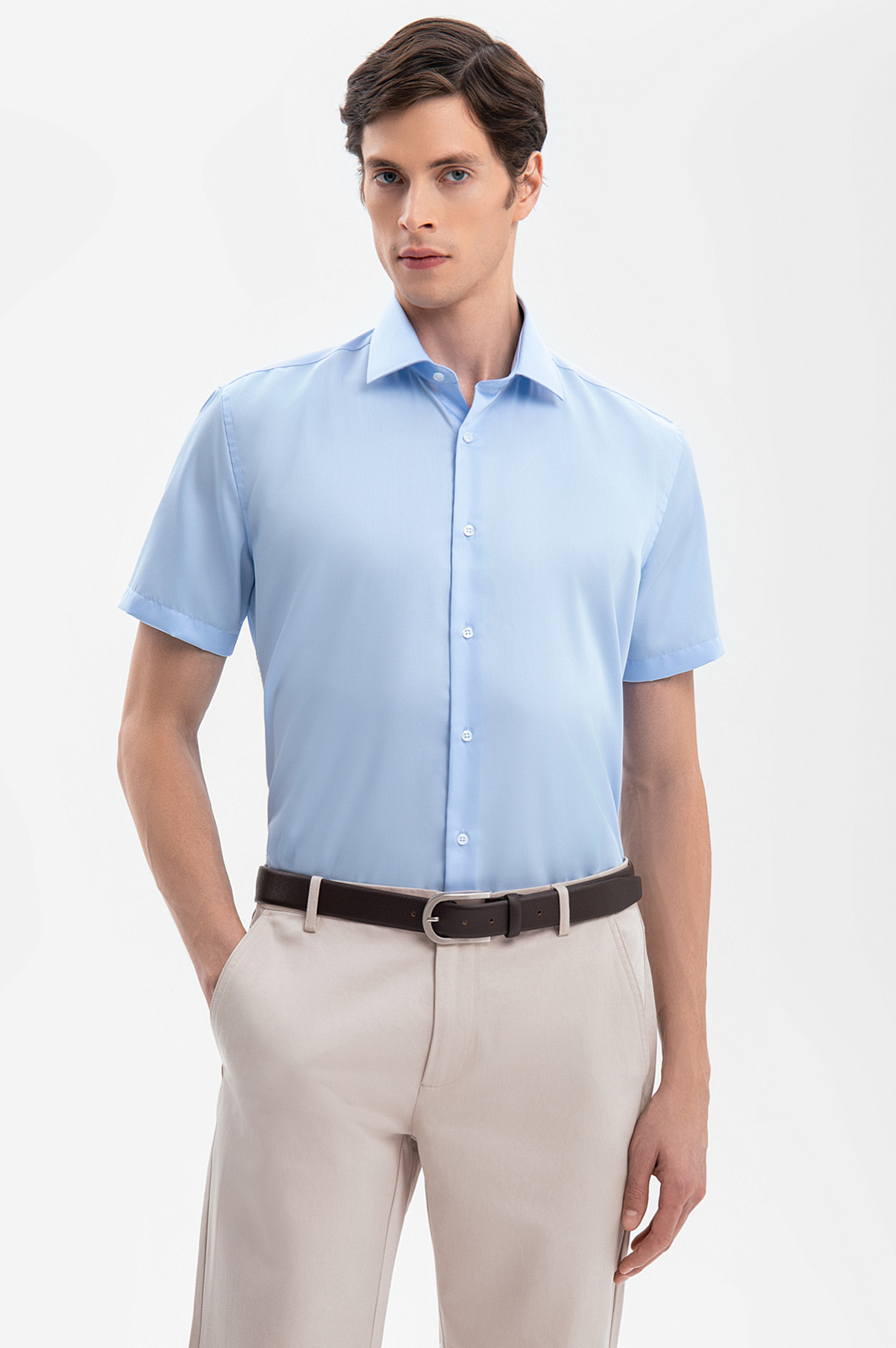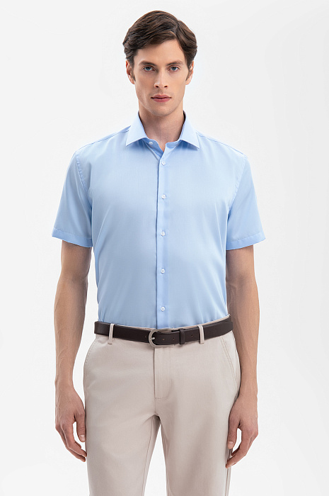 Сорочка с коротким рукавом из хлопка, устойчивая к сминанию, цвет голубой, цена 5 592 руб., код 269350 - купить в Казани в интернет-магазине KANZLER