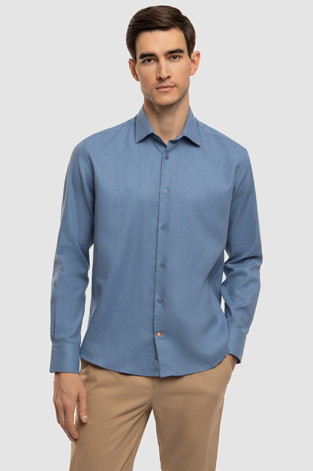 Сорочка из хлопка и льна Monti, цвет голубой, цена 5 990 руб., код 267307 - купить в Казани в интернет-магазине KANZLER