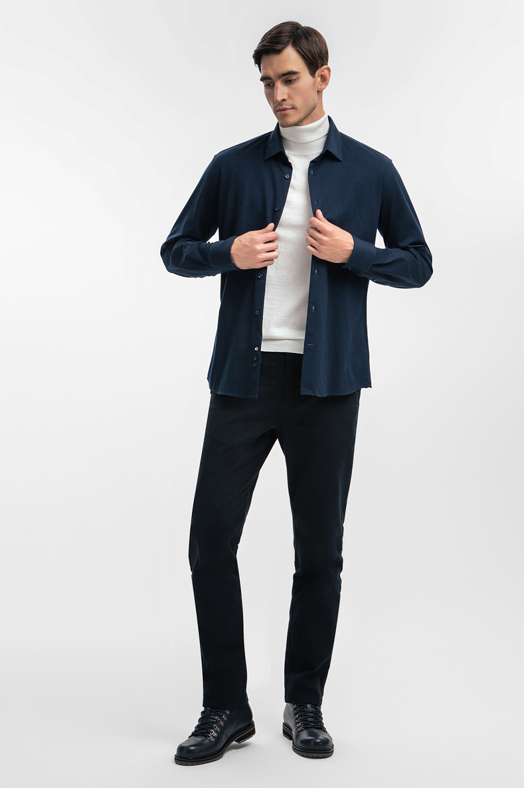 Трикотажная сорочка KANZLER синего оттенка из чистого хлопка подойдет для создания образов в городском и спортивном стилях. Прилегающий Приталенный крой подчеркивает лучшее в мужской фигуре. Гладкое трикотажное полотно мягко облегает тело. Нарушителем спокойствия выступает нижняя пуговица с фирменным инициалом, которая служит небольшим контрастным акцентом на темно-синем фоне. Дорогой натуральный материал из 100-процентного хлопка создает ощущение заботы и комфорта. Нежные натуральные волокна не раздражают чувствительную кожу, сохраняют свежесть и берегут естественное тепло тела. Параметры модели: рост 192, 101-76-97 Размер на модели: 40