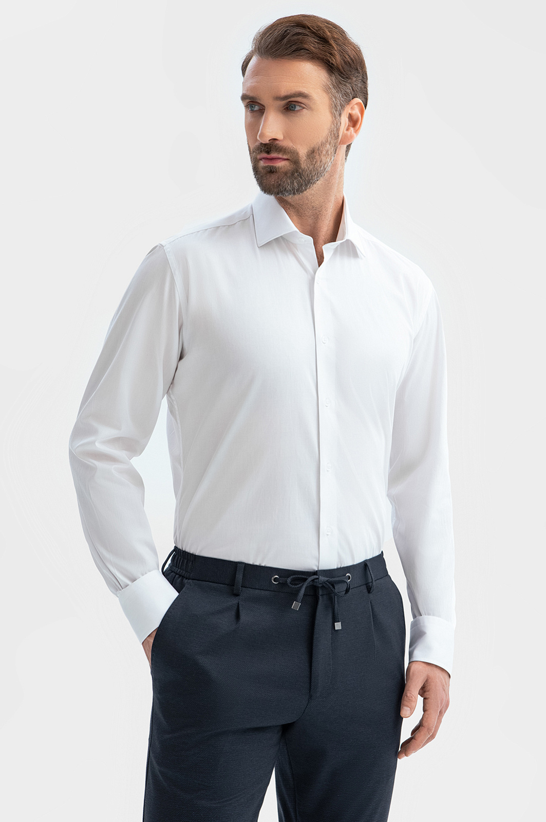 Белая сорочка KANZLER из хлопка с защитой от пятен позволит с достоинством принять все вызовы дня. Классическая базовая вещь уместна в абсолютном большинстве сочетаний и случаев — торжественных, деловых и повседневных. Облегающий крой подчеркивает достоинства мужественной фигуры. Легкая дышащая ткань из 100-процентного хлопка обеспечивает приятные тактильные ощущения и комфорт в течение всего дня. Натуральный материал выглядит всегда аккуратно. Секрет его безупречности — в специальной обработке, которая наделяет ткань дополнительной суперсилой — устойчивостью к загрязнениям. Параметры модели: рост 189, 102-80-99 Размер на модели: 40
