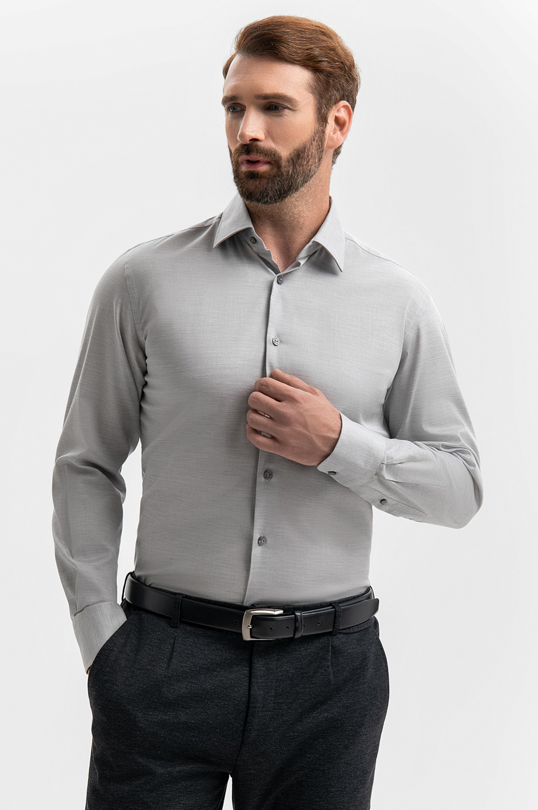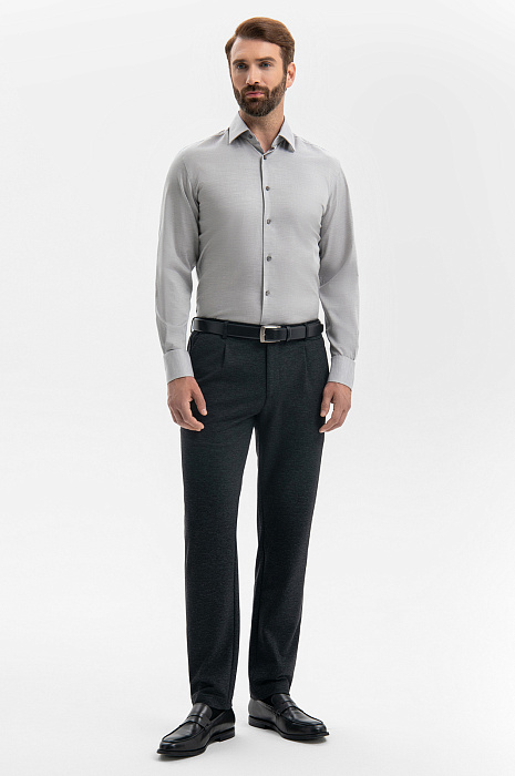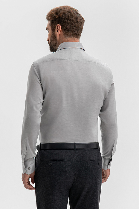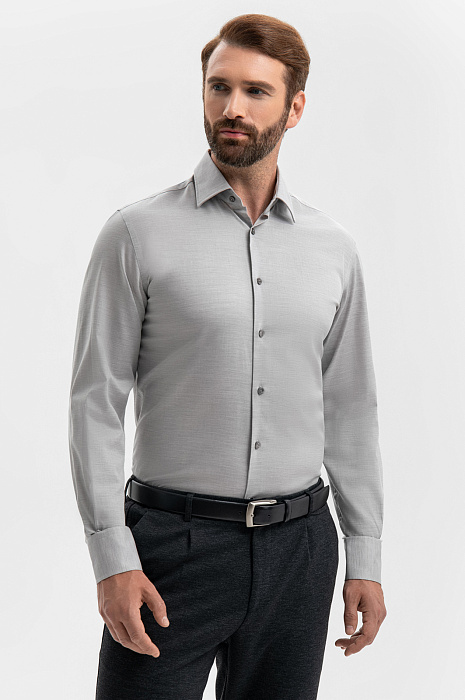 Светло-серая сорочка KANZLER из чистого хлопка — незаменимый повседневный вариант для офиса и неофициальных выходов, требующих аккуратного и собранного вида. Универсальный оттенок и классический крой хорошо сочетаются со строгими и неформальными брюками. Модель свободно облегает тело. Классический силуэт — универсальный и комфортный для любого типа фигуры. Сорочка выполнена из 100-процентного хлопка — легкого гипоаллергенного дышащего материала, который сохраняет свежесть надолго и не раздражает кожу. Параметры модели: рост 189, 102-80-99 Размер на модели: 40