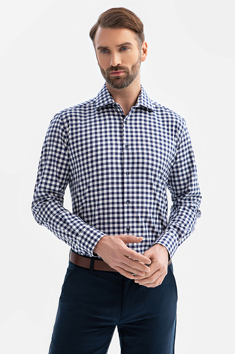 Сорочка из хлопка в клетку, цвет синий, цена 4 990 руб., код 269324 - купить в Казани в интернет-магазине KANZLER