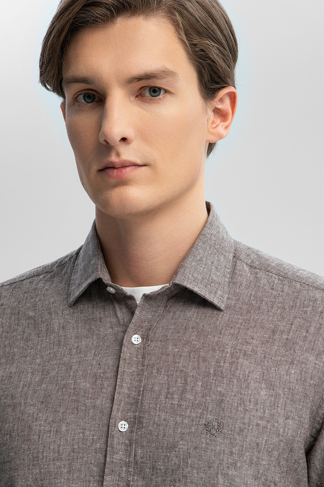 Стильная сорочка KANZLER изо льна и хлопка сшита из роскошной ткани Getzner (Австрия). Полотняное переплетение материала создает красивый меланжевый эффект. Модель сочетает классический крой и небольшие акцентные детали — фирменная вышивка на груди, выделяющаяся в общем ряду нижняя пуговица. Свободная степень облегания — залог комфорта и хорошей посадки. Сорочку изо льна и хлопка можно носить в любую погоду. Ткань из натуральных гипоаллергенных волокон поддерживает оптимальную для тела температуру. Лен создает ощущение прохлады в жаркий день. Хлопок обеспечивает легкость и воздухопроницаемость ткани. Параметры модели: рост 191, 97-77-99 Размер на модели: 40