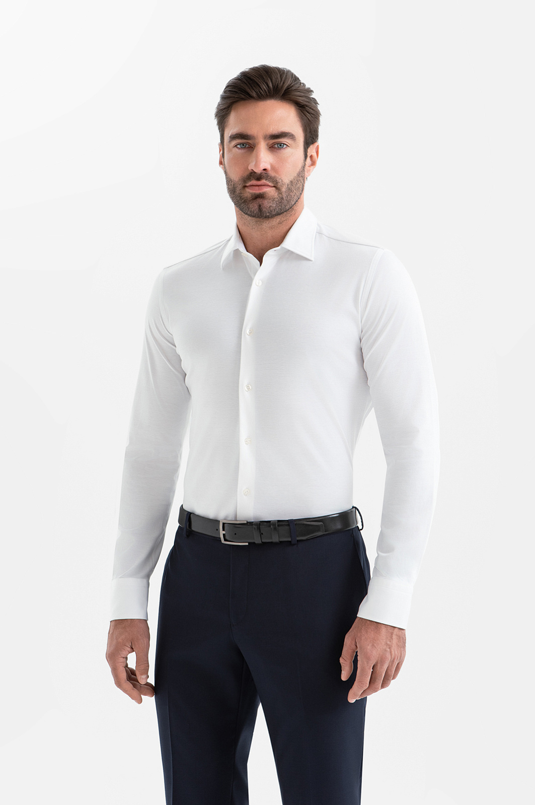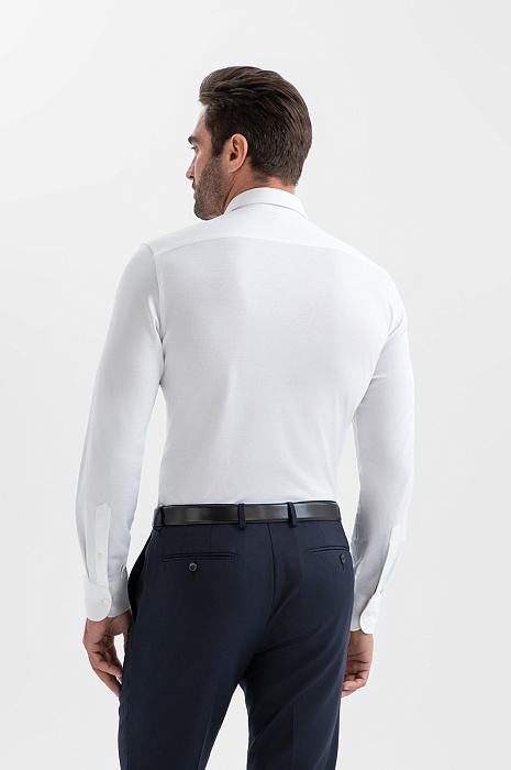 Сорочка KANZLER из хлопка сочетает элегантность традиционной белой рубашки с мягкостью и удобством трикотажной вещи. Классический дизайн позволяет интегрировать модель как в деловой гардероб, так и в стильные повседневные аутфиты. Прилегающий крой аккуратно подчёркивает силуэт, но не обтягивает тело, создавая собранный и мужественный образ. Высококачественный трикотаж сделан из 100% хлопка. Его лёгкие гипоаллергенные волокна отличаются высокой воздухопроницаемостью и гигроскопичностью, что делает сорочку незаменимой вещью для тёплых дней.