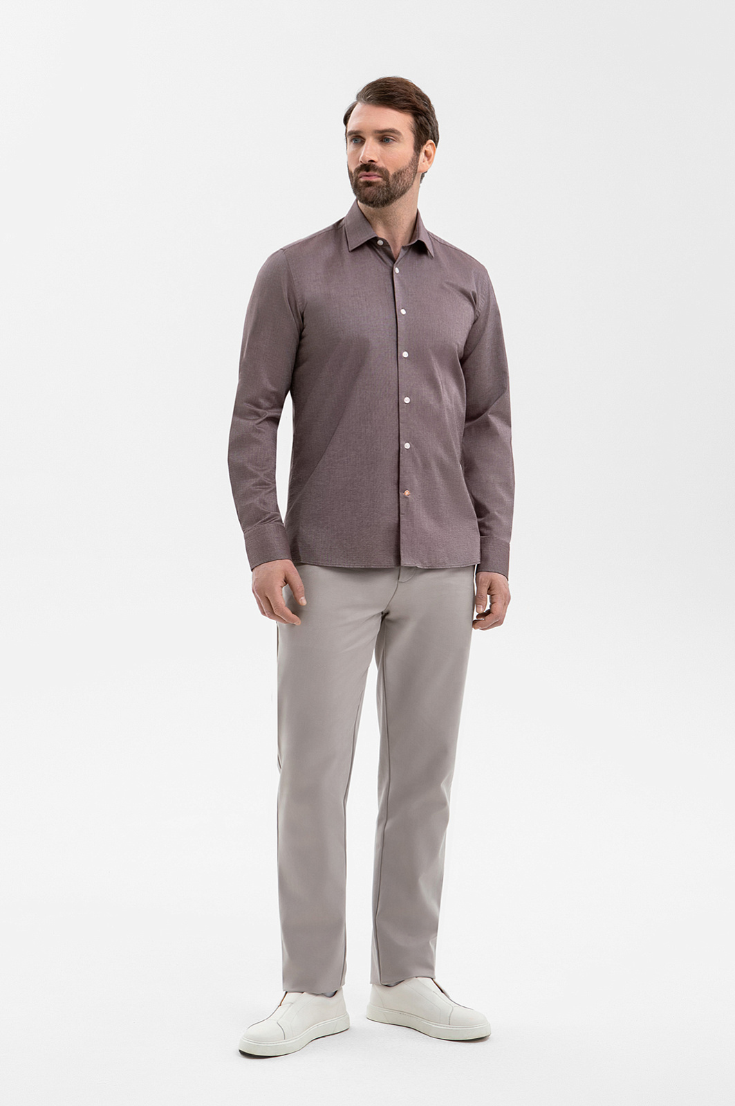 Сорочка KANZLER создаёт впечатление естественной, ненавязчивой утончённости благодаря безупречной посадке, дорогой итальянской ткани и глубокому, слегка приглушённому кофейному оттенку. Изящный силуэт красиво обрисовывает контуры тела. Текстильная мануфактура Carlo Bassetti, основанная в XIX веке, использует в производстве отборный длинноволокнистый хлопок, из которого получаются плотные, но лёгкие ткани. Воздухопроницаемые гипоаллергенные волокна хлопка поддерживают оптимальную для тела температуру и сохраняют ощущение свежести даже в насыщенном городском ритме.