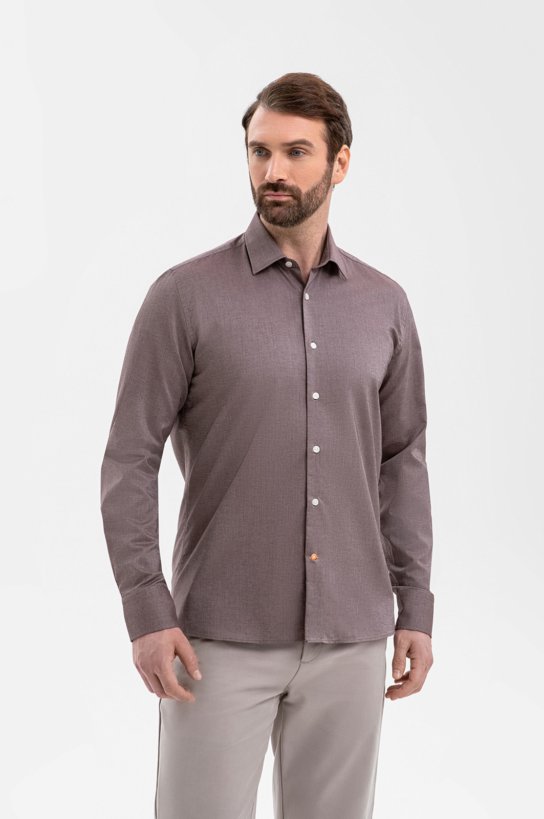 Сорочка из итальянской хлопковой ткани Carlo Bassetti, цвет коричневый, цена 8 990 руб., код 271361 - купить в Казани в интернет-магазине KANZLER