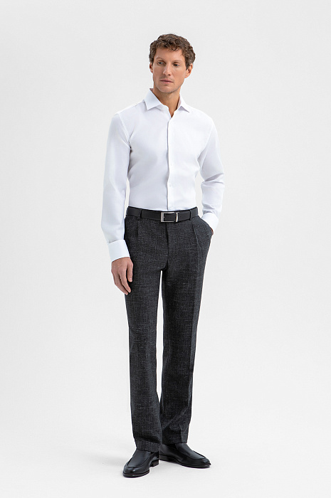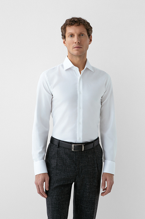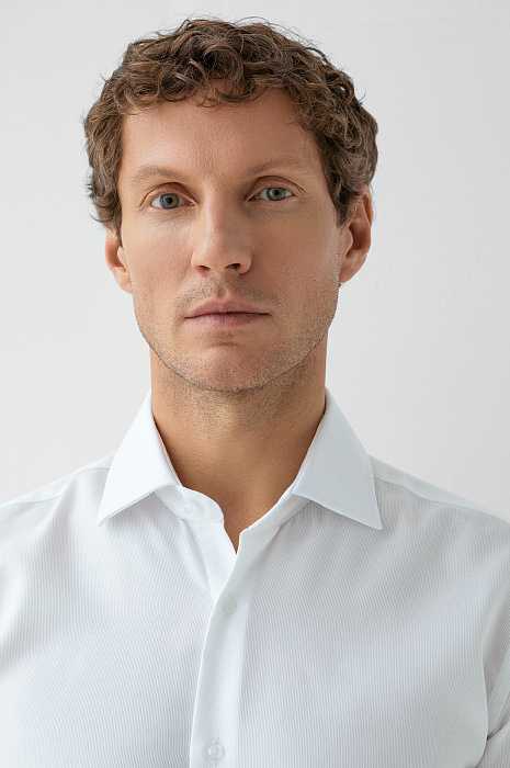 Белая сорочка KANZLER из чистого хлопка с едва заметной фактурой — воплощение современной классики, прочтение которой требует внимательного взгляда. Его привлекает дорогая ткань Getzner (Австрия) с тонкой деликатной фактурой, придающей белому цвету благородство и глубину, и лаконичный крой. Силуэт slim fit подчёркивает фигуру аккуратно и сдержанно, не нарушая комфорта и свободы движений. Натуральный гипоаллергенный хлопок обеспечивает отличную воздухопроницаемость и тактильный комфорт, сохраняя свежесть и аккуратный внешний вид даже при интенсивном ритме.