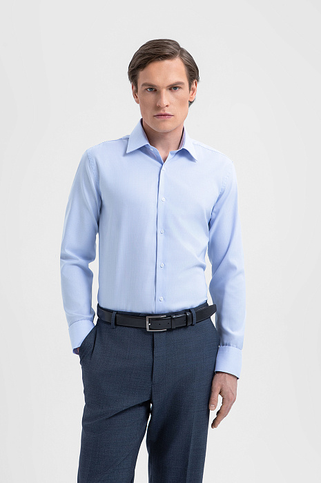 Голубая сорочка KANZLER из инновационной хлопковой ткани — идеальный баланс комфорта и классики. Её освежающий цвет органично сочетается с классическими костюмами и с менее формальными комплектами в стиле кежуал. Тонкая вертикальная полоска, заметная при ближайшем рассмотрении, создаёт визуальную фактуру. Силуэт с полуприлегающей посадкой красиво подчёркивает контуры тела. В составе ткани — мягкий гипоаллергенный хлопок (95%) и спандекс (5%). Природные волокна отвечают за воздухопроницаемость и комфорт при контакте с кожей, а эластичные нити спандекса поддерживают аккуратный вид даже при активном движении. Сорочка легко восстанавливает форму и не требует специального ухода.