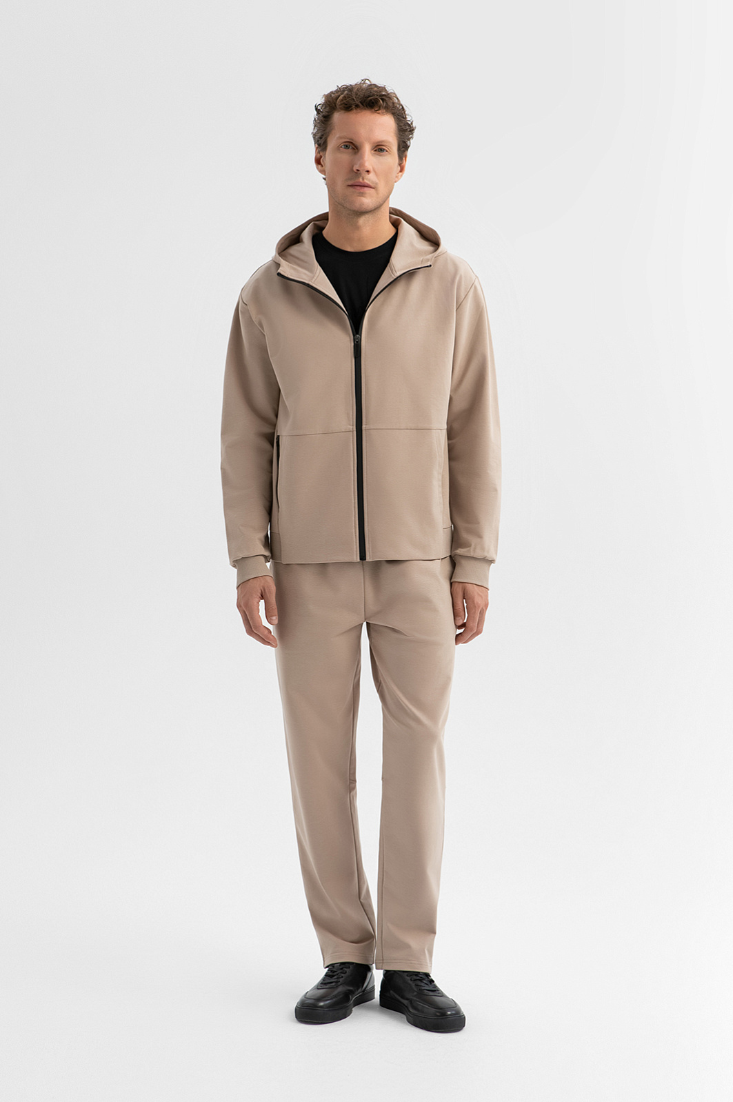 Спортивный костюм KANZLER из мягкого трикотажа — идеальный выбор для тех, кто ценит сочетание продуманного комфорта и современной эстетики. Он легко трансформируется из спортивного аутфита в городской кежуал, сочетаясь со строгой верхней одеждой. Толстовка с капюшоном и чёрной застёжкой-молнией подчеркивает минималистичный характер модели, а крупные карманы добавляют функциональности. Джоггеры с кулиской обеспечивают удобную посадку, а дополнительный карман на молнии с прорезиненной контрастной окантовкой служит стильным акцентом и практичным решением для мелочей. Трикотаж из гипоаллергенного хлопка с добавлением полиэстера и спандекса обеспечивает приятную мягкость, воздухопроницаемость и эластичность, позволяя костюму сохранять форму и комфорт при активных движениях.