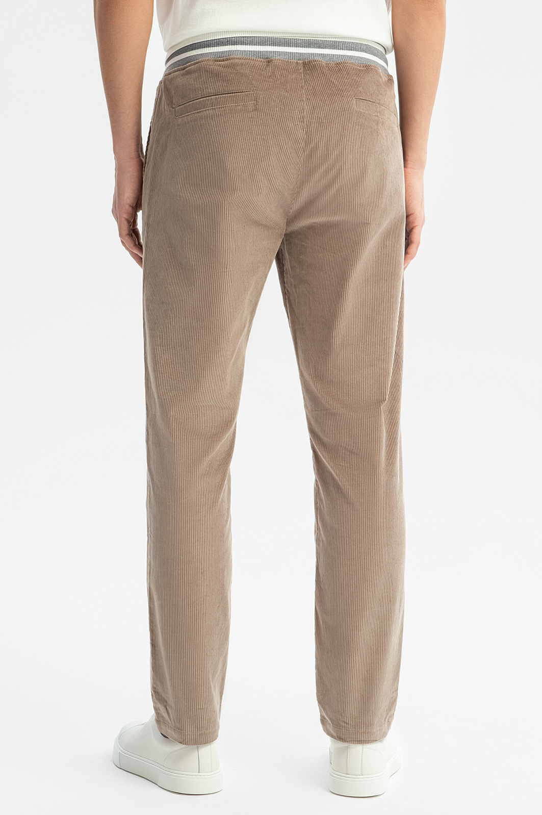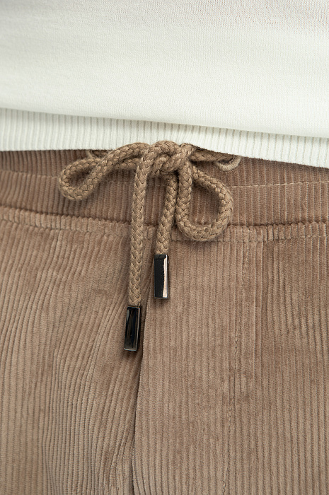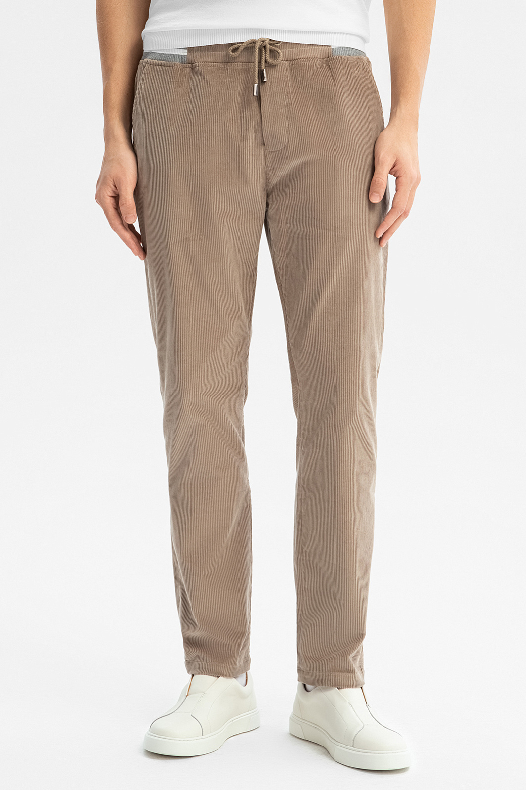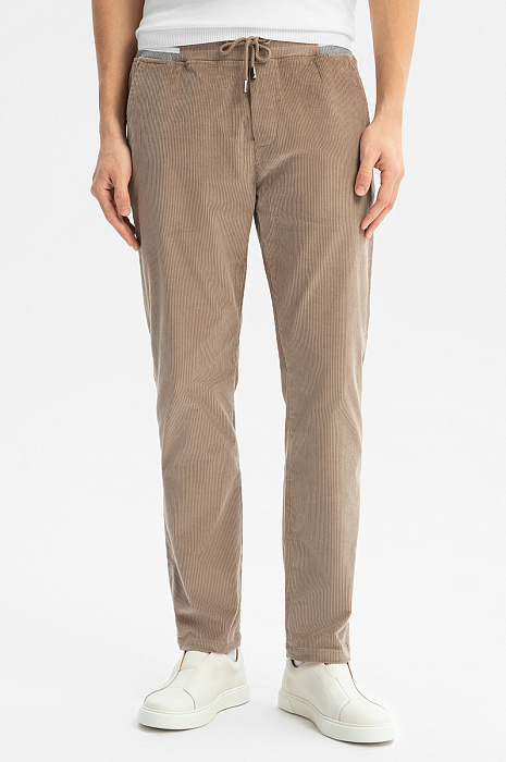 Роскошный вельветовый костюм KANZLER оттенка лесного ореха из лимитированной коллекции сочетает комфорт и эстетику и провозглашает отдых важной составляющей жизни. Костюм отличается современным расслабленным кроем. Удобная кулиска на шнурке помогает регулировать объем талии и фиксировать брюки. Светло-серые трикотажные резинки с полосками привносят спортивный шик и легкость. Превосходный премиальный вельвет для костюма создан мануфактурой Duca Visconte di Modrone (Италия). В составе ткани — гипоаллергенный воздухопроницаемый хлопок (99%). Его натуральные волокна отлично поддерживают комфортную для тела температуру. Небольшая добавка эластана (1%) помогает сохранять форму и укрепляет ткань.