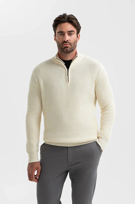 Свитер из хлопка, цвет молочный, цена 7 990 руб., код 270257 - купить в Казани в интернет-магазине KANZLER