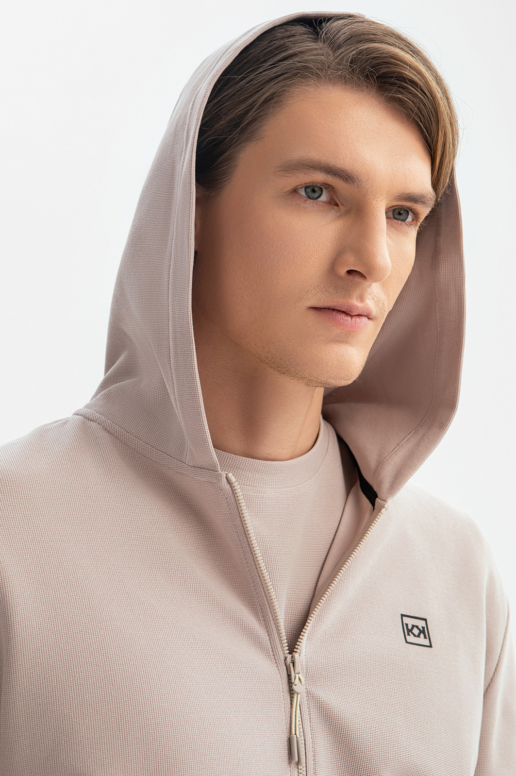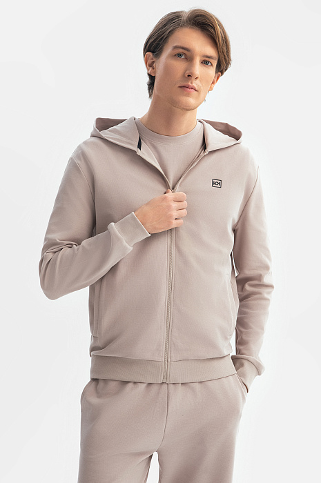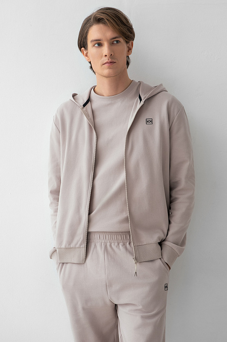 Светло-бежевая толстовка KANZLER из хлопка на молнии с капюшоном — универсальная одежда, в которой можно с удовольствием провести уик-энд — отдохнуть и восстановить силы в спа-отеле, на курорте и дома. Небольшим акцентом служит логотип на груди. Комфорт обеспечивают спортивный свободный крой и мягкий эластичный трикотаж из хлопка. Воздухопроницаемый гипоаллергенный хлопок (95%) не раздражает даже самую чувствительную кожу. Небольшое добавление спандекса помогает материалу держать форму. Для создания комплекта модель можно дополнить светло-бежевыми брюками KANZLER. Параметры модели: рост 191, 97-77-99 Размер на модели: M