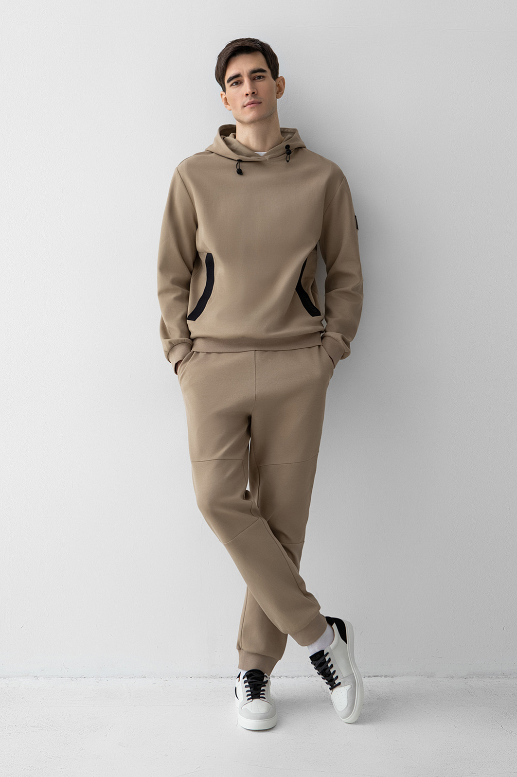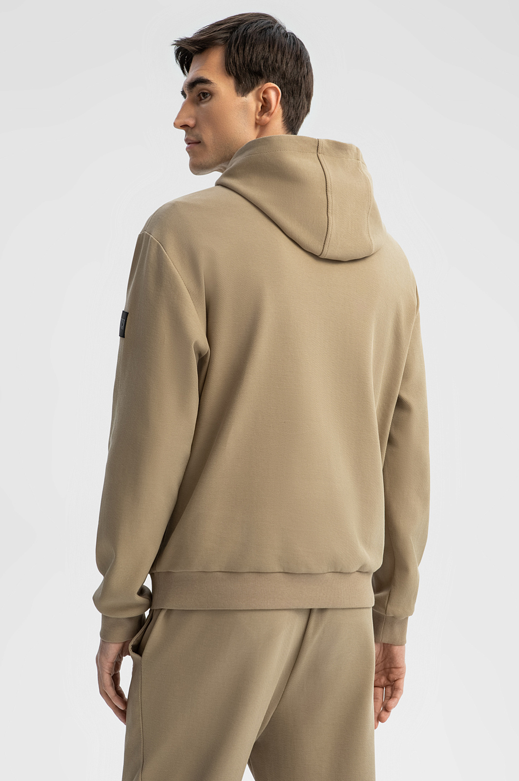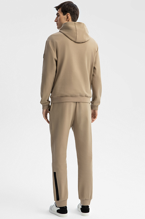 Толстовка с капюшоном KANZLER из бежевой хлопковой ткани в диагональный рубчик с контрастными деталями — удобная спортивная вещь для свободных дней, когда можно забыть о планах и графиках и насладиться блаженными моментами — спокойной прогулкой по городу, пробежкой в парке и отдыхом с близкими. Плотные широкие трикотажные резинки отлично придерживают края рукавов и низ толстовки. При ветреной погоде шнурок с фиксатором позволяет плотнее затягивать капюшон. Толстовка сшита из гипоаллергенного хлопка (89%) с добавлением полиэстера. Дышащий натуральный материал сохраняет естественное тепло тела, не боится капризов погоды и выдерживает испытание временем. Параметры модели: рост 192, 101-76-97 Размер на модели: M