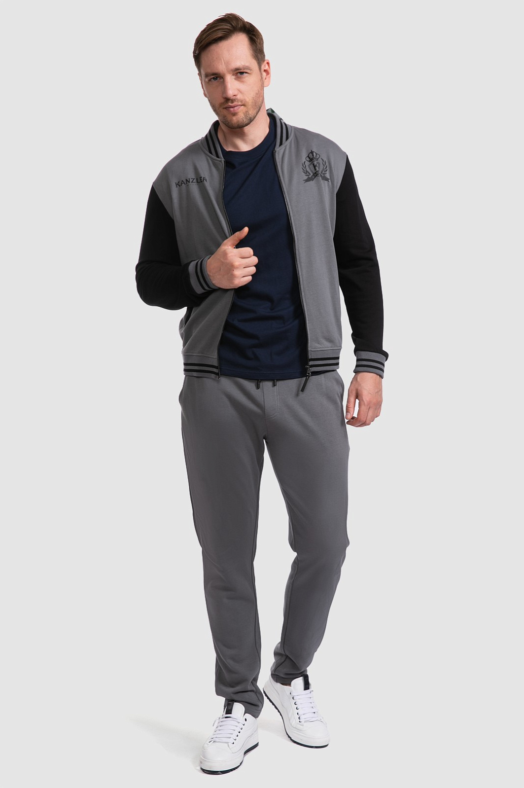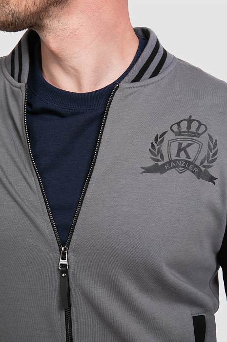 Представляем спортивную куртку KANZLER, выполненную в стильном и одновременно универсальном сочетании графитового и черного цветов. Брендовая символика на передней полочке и дизайн бомбер выводят модель за пределы только спортивного стиля, делая актуальным элементом кежуал луков. Состав ткани - хлопок с небольшим добавлением полиэстера - это лучшее сочетание для спортивной одежды. Хлопок обеспечивает великолепный воздухообмен, впитывание и отведение влаги, полиэстер повышает прочность и износостойкость материала - куртка хорошо сохраняет исходную форму, не линяет и легко отстирывается от любых загрязнений.