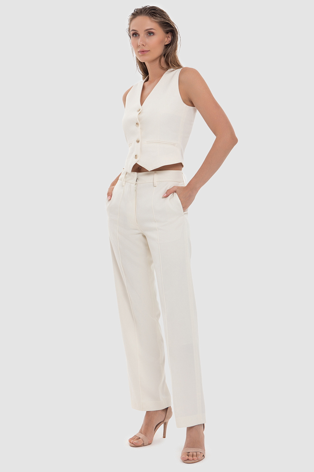 Молочный жилет KANZLER из смесовой шерсти – воплощение изысканности и женственности. Модель отличается классическим и одновременно трендовым дизайном, создавая основу для множества комбинаций с другими вещами из вашего гардероба. Мягкость шерсти и прочность полиэстера обеспечивают комфорт и долговечность. Благородный молочный оттенок добавляет образу свежести и утонченности, а прилегающий крой подчеркивает женственный силуэт. Актуальный и лаконичный дизайн позволяет носить жилет в составе костюма или комбинировать его с юбками и джинсами, создавая как классические, так и образы в стиле кежуал или умный кежуал. Параметры модели: рост 180, 87-61-91 Размер на модели: S